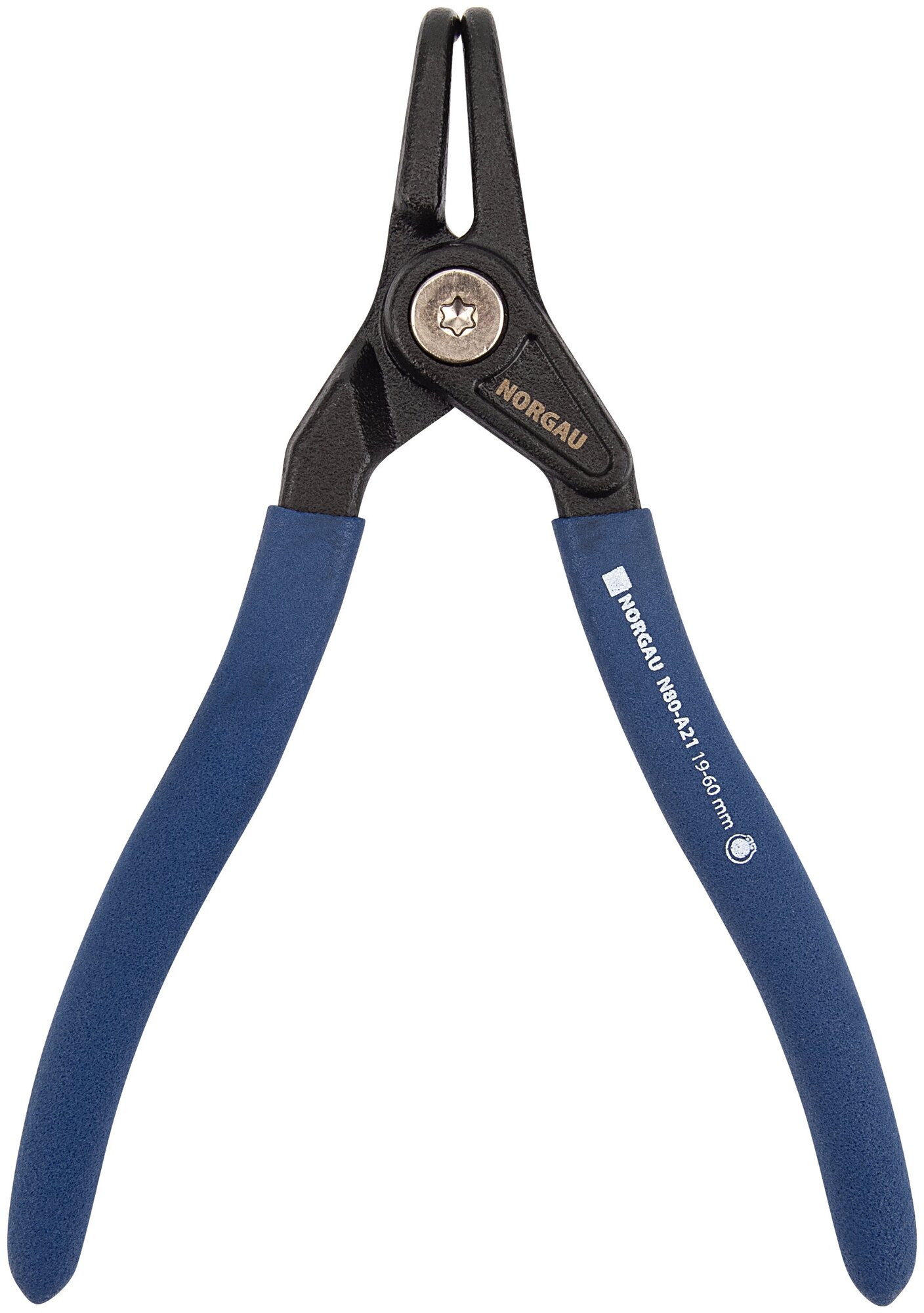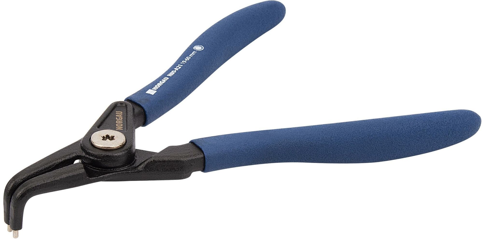 Применяется для монтажа наружных стопорных колец, а также для раскрытия пружинных стопорных колец. Размер- А21. Для колец диаметром 19-60 мм. Диаметр вставки- 1,8 мм. Общая длина- 170 мм. Изготовлен из специальной стали по DIN ISO 5254, форма А, изогнутые. Вставки из подшипниковой стали для работы в тяжелых условиях. Твердость вставок 60-64 HRC. Рукоятка с ПВХ покрытием. Подпружиненный шарнирный механизм обеспечивает надежную фиксацию стопорных колец в инструменте.