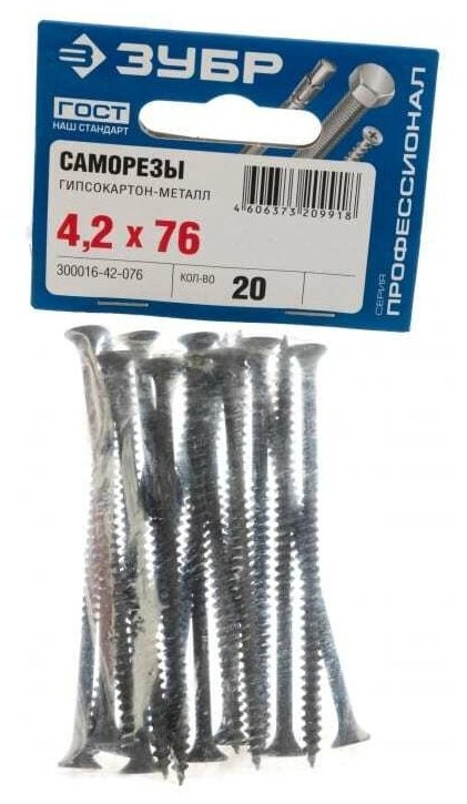 Фосафатированные саморезы по дереву/металлу ЗУБР 300016-42-076