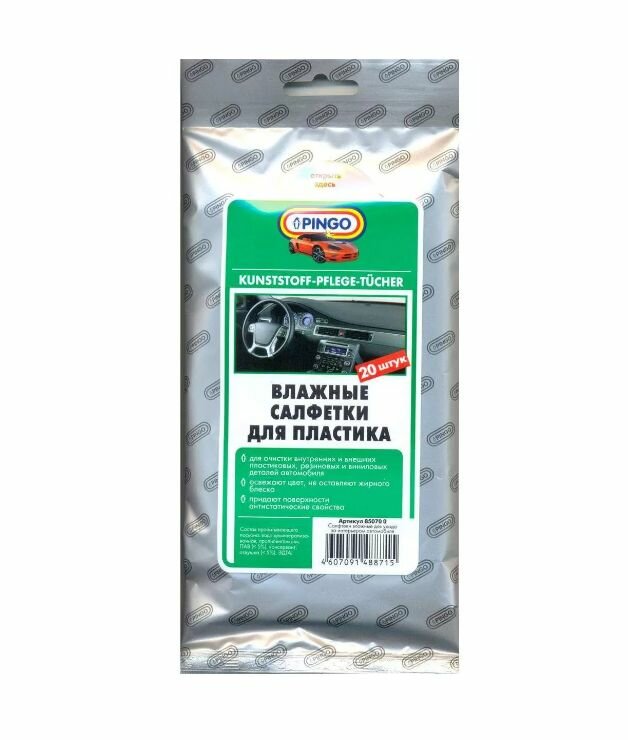 PINGO - это 60 лет опыта производства автохимии, автокосметики и других чистящих и моющих средств. Немецкая компания «Pingo Erzeugnisse GmbH» (Пинго Эрцойгниссе) основана в 1962 году, и занимает лидирующее место среди производителей товаров автохимии и автокосметики в Германии и в мировом рынке.Некоторые товары изготавливаются в России по немецким рецептурам и с использованием немецких ингредиентов. Производство товаров в России, позволило снизить себестоимость и повысить привлекательность продукции для покупателей.Материал: Высококачественная автохимияПотребительские свойства: - Европейские стандарты качества - Безопасное использование в салоне автомобиля