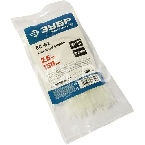 Нейлоновые хомуты ЗУБР 2.5 x 150 мм 100 шт белые