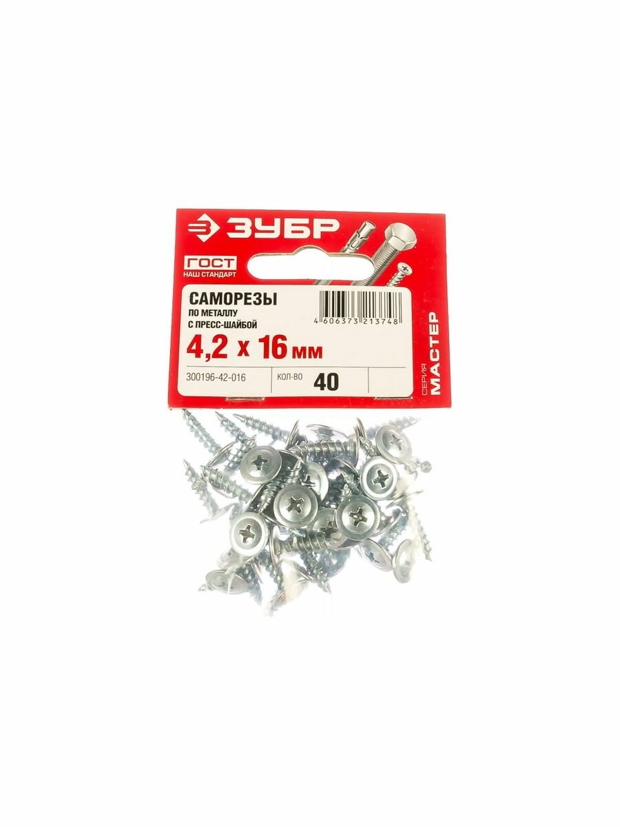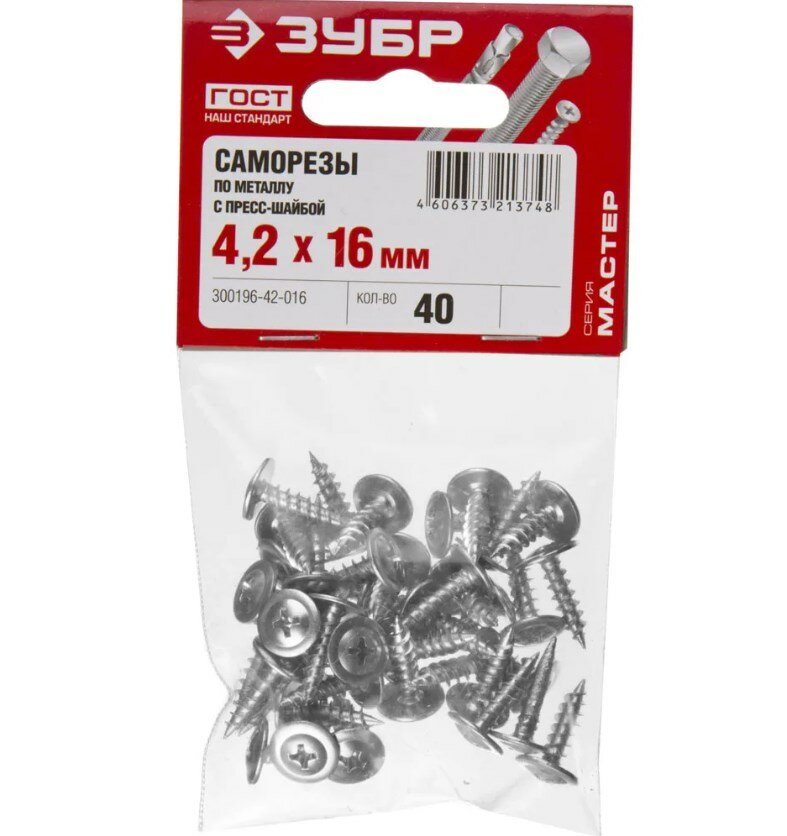 Саморезы с прессшайбой по листовому металлу ЗУБР 300196-42-016