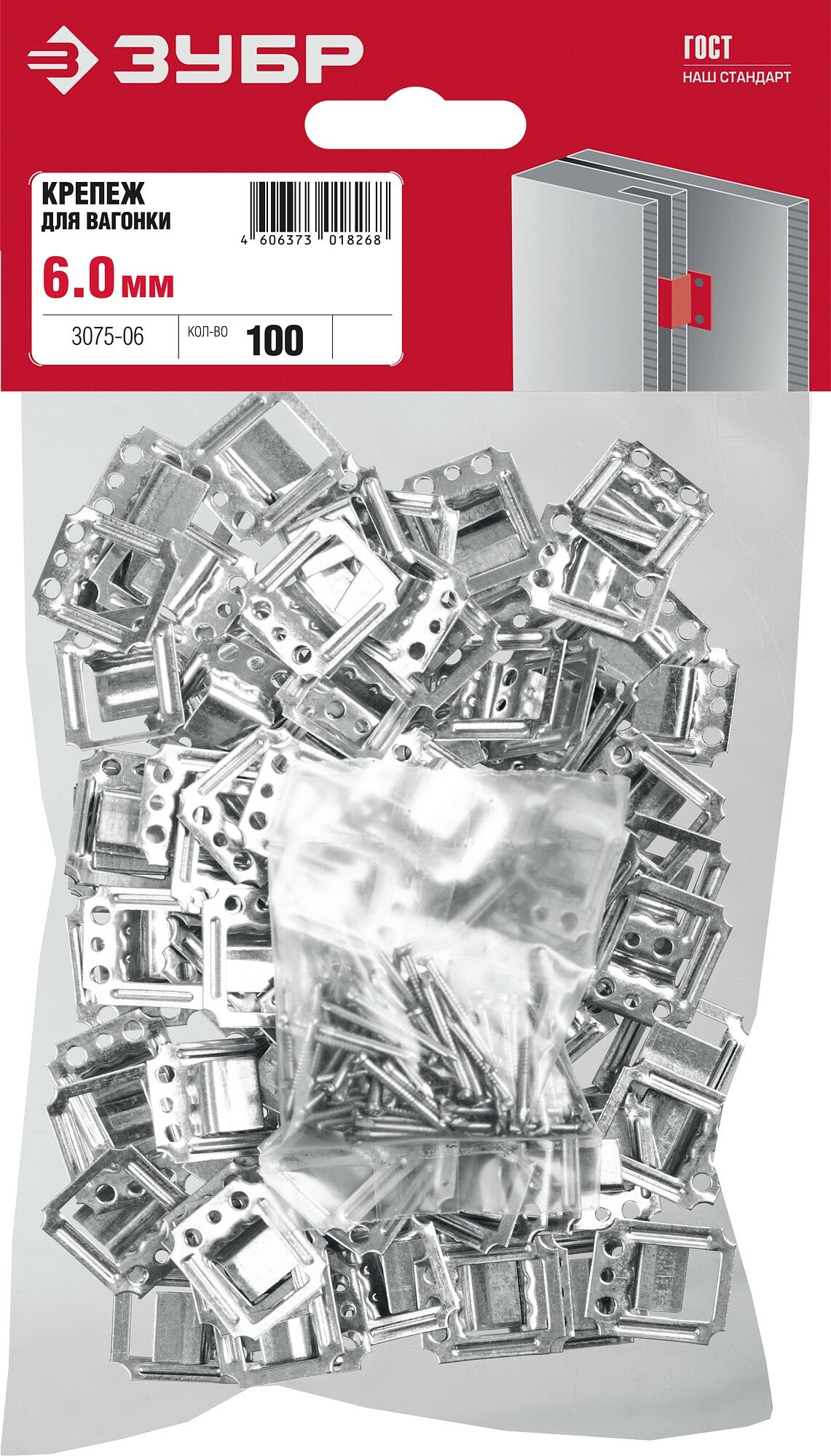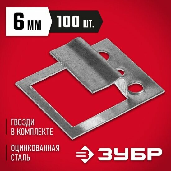 ЗУБР Кляймер 6 мм, крепеж для вагонки, цинк, 100 шт (3075-06)
