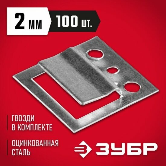 ЗУБР Кляймер 2 мм, крепеж для вагонки, цинк, 100 шт (3075-02)