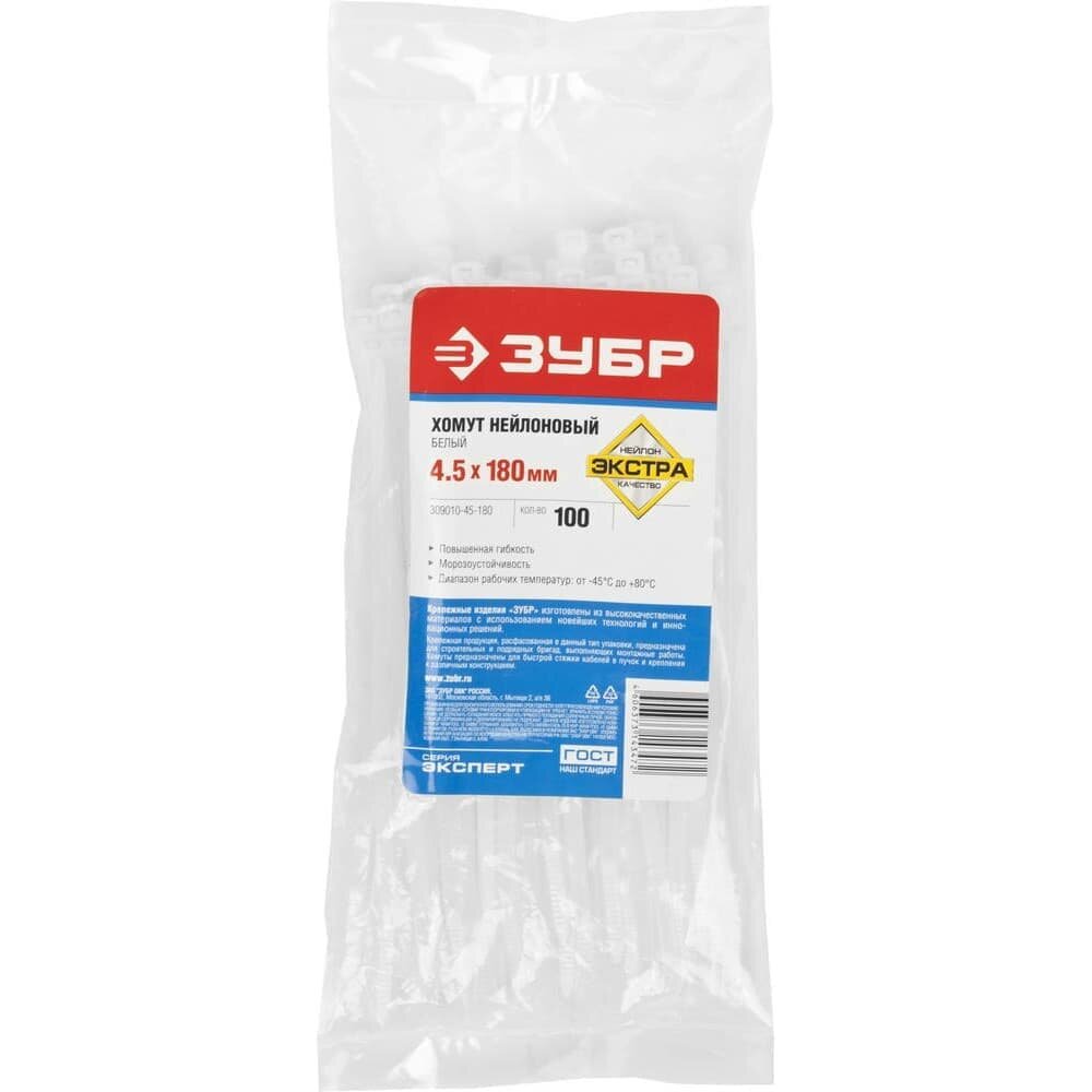 Нейлоновые хомуты ЗУБР 4.5 x 180 мм 100 шт белые