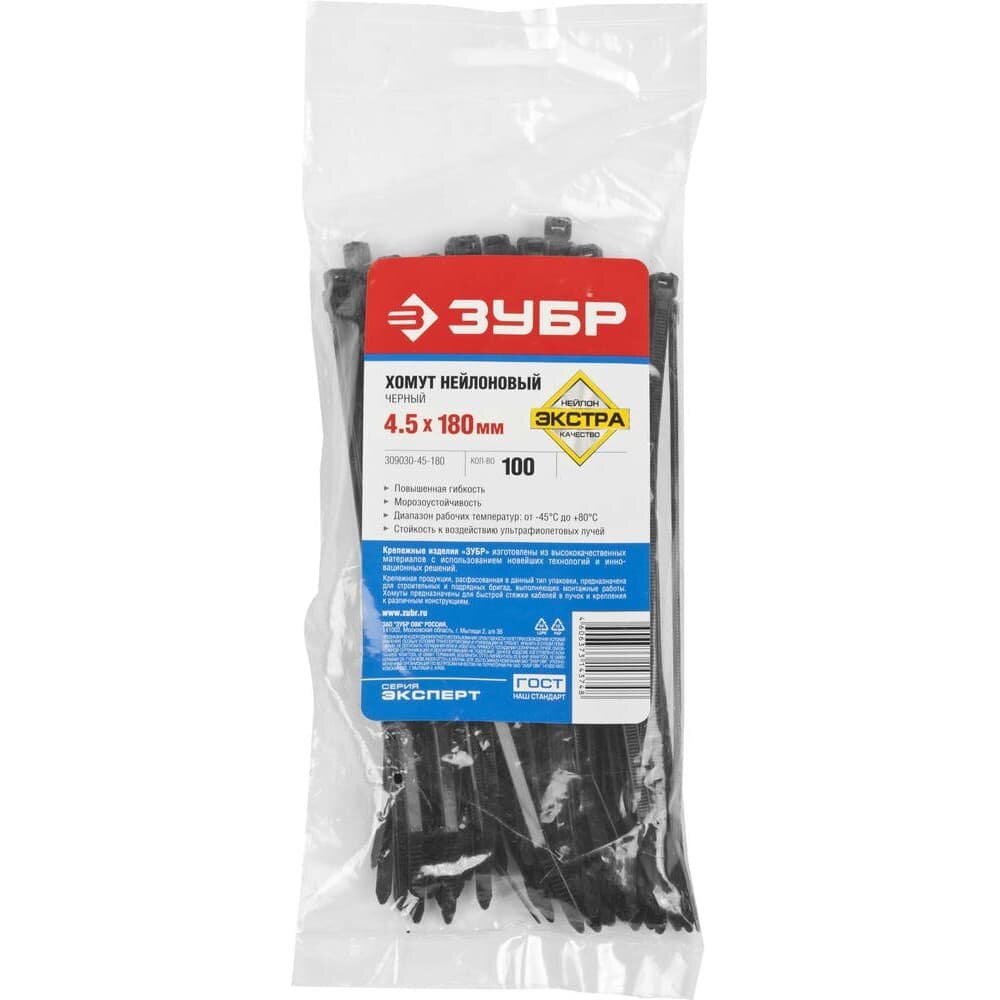 Нейлоновые хомуты ЗУБР 4.5 x 180 мм 100 шт черные