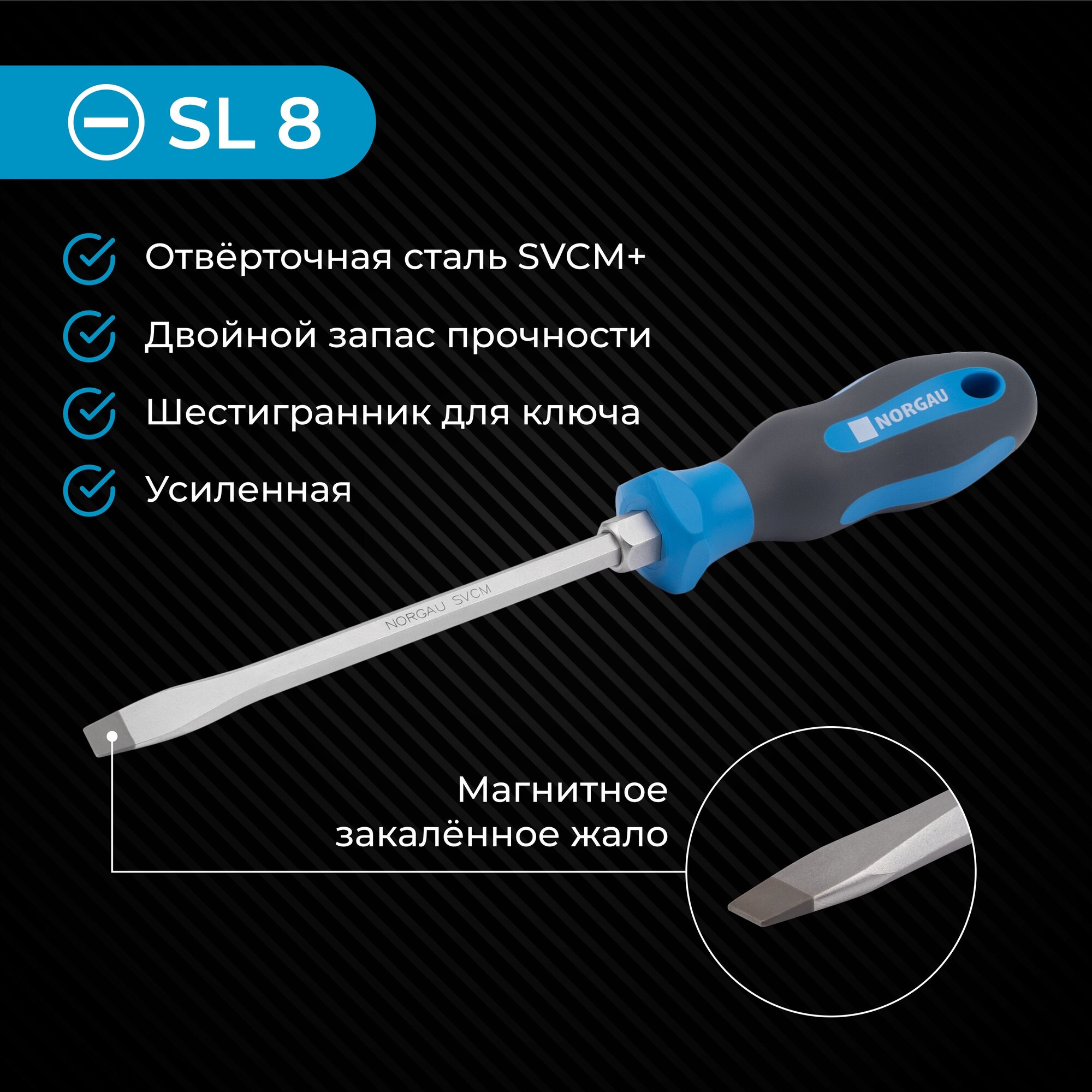Усиленная шлицевая отвертка NORGAU N155-8x150 (062011280)