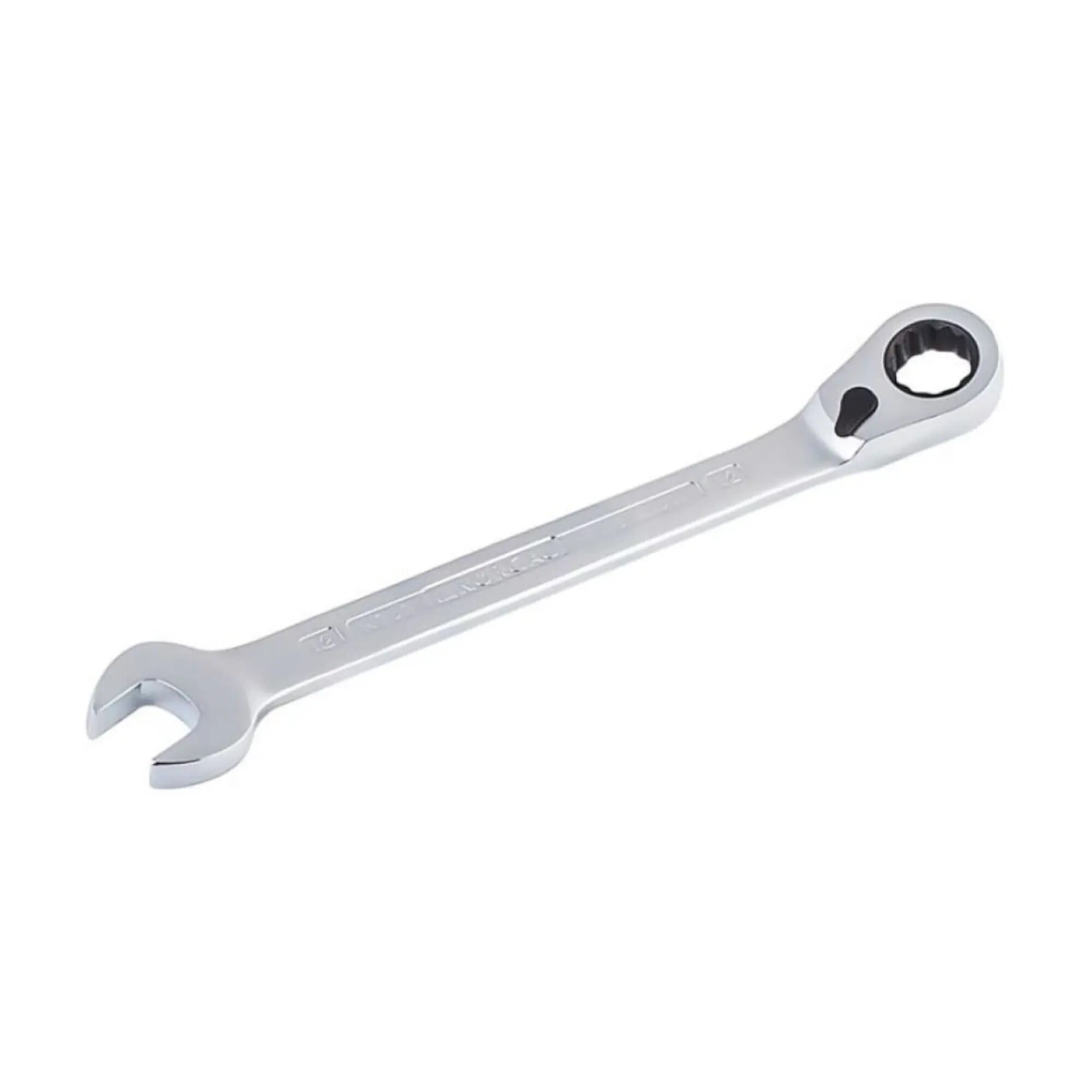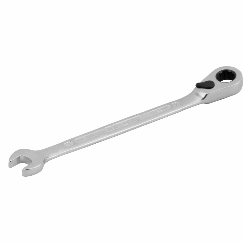 Ключ гаечный комбинированный с переключающейся трещоткой. Накидная часть оборудована реверсивным трещоточным механизмом с углом переключения 5?, что обеспечивает удобство работы в труднодоступных местах. Ключ изготовлен из высококачественной хромованадиевой стали, имеет высокую износостойкость. Максимально точное соответствие размерам крепежа, специальный 12-гранный профиль накидной части, позволяет осуществлять работу с болтовыми соединениями не повреждая крепеж. Двойной запас прочности снижает риск производственных травм. Матовое хромирование поверхности ключа обеспечивает комфортное удерживание ключа в руках в случаях загрязнения смазочными материалами. Губки рожковой части отклонены от оси ключа, накидная часть отклонена от плоскости рукоятки ключа на 15 ?, что позволяет работать в труднодоступных местах. Размер ключа: 8 мм. Длина ключа L, мм: 134