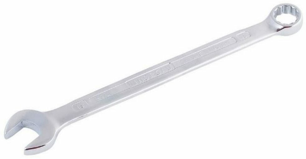 Гаечный комбинированный ключ удлинённый. Изготовлен из высококачественной хромованадиевой стали, имеет высокую износостойкость. Максимально точное соответствие размерам крепежа, специальный 12-гранный профиль накидной части, позволяет осуществлять работу с болтовыми соединениями, не повреждая крепеж. Хромирование обеспечивает надёжную защиту от коррозии. Изготовлен в соответствии с DIN 3113. Губки рожковой части отклонены от оси ключа на 15 градусов. Размер ключа: 55 мм. Длина: 560 мм.