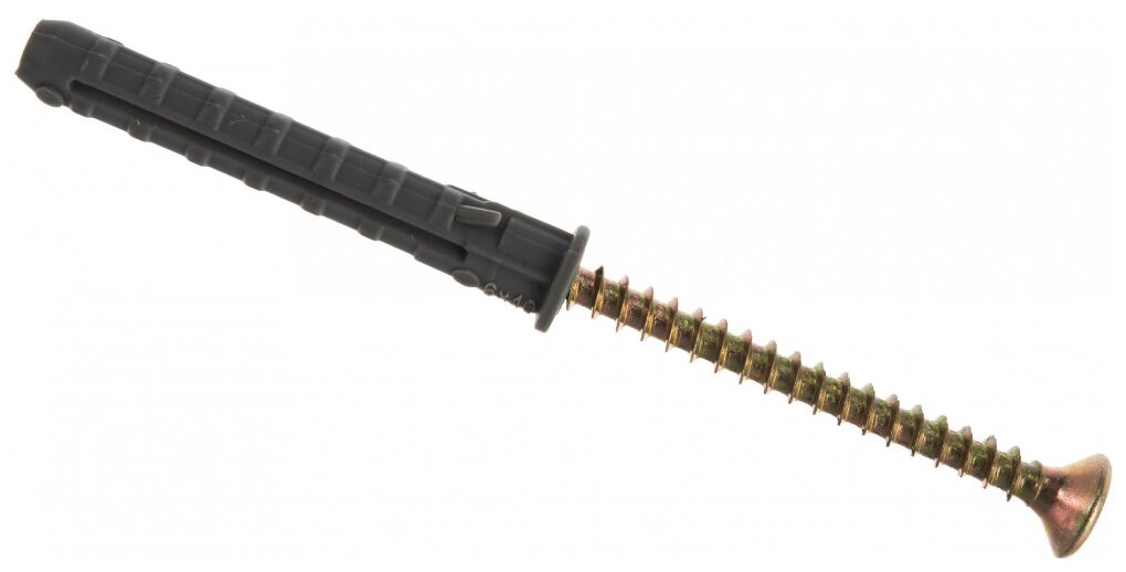 Дюбель Зубр МАСТЕР распорный полипропиленовый с полной резьбой и потайной головкой в комплекте с шурупом применяется для крепления элементов конструкций к бетону, камню, кирпичу и другим полнотелым строительным материалам.