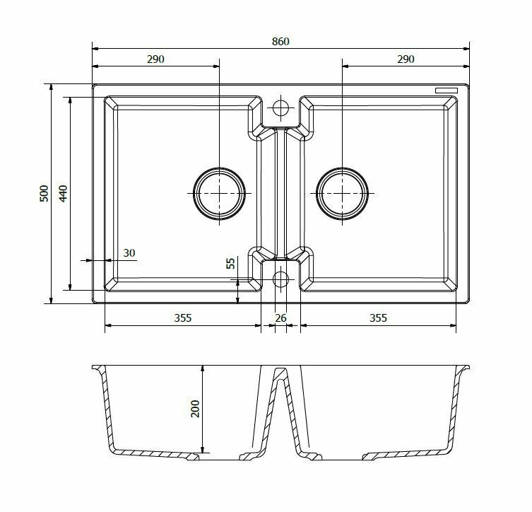| Количество чаш кухонной мойки | две чаши |