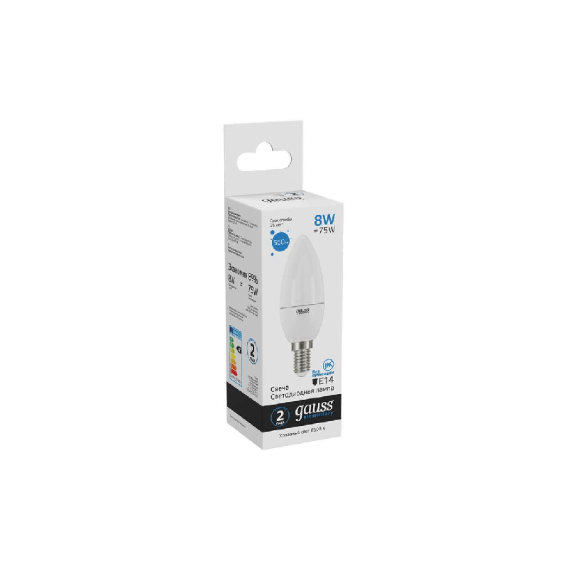 Лампа светодиодная Gauss Elementary 8Вт цок.:E14 кол.:C37 (упак.:10шт)