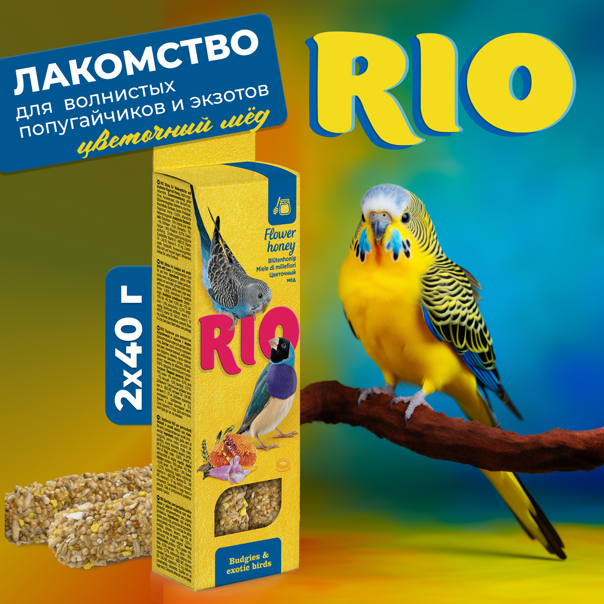 Лакомство для птиц RIO Палочки для волнистых попугаев и экзотов с медом 80г