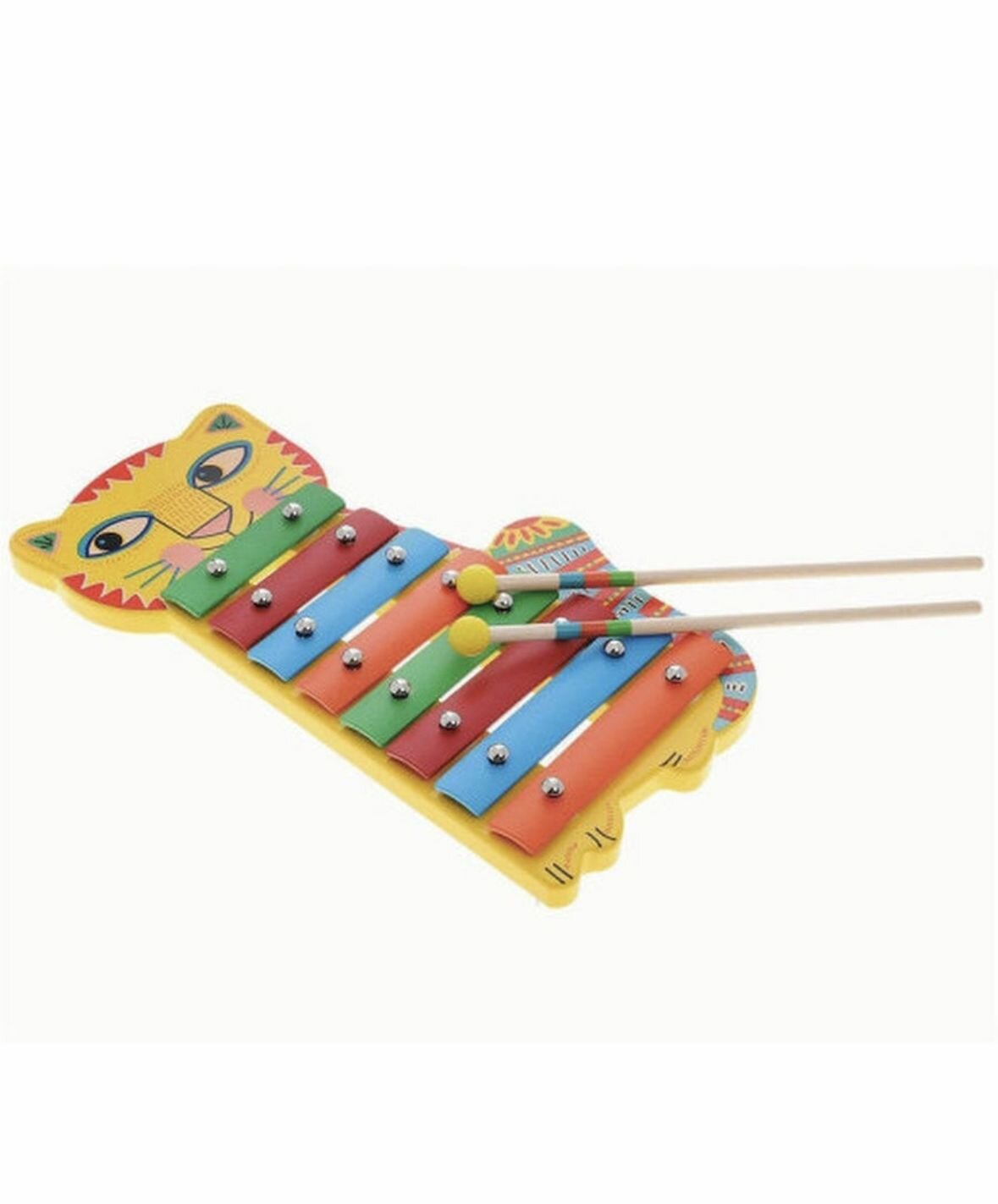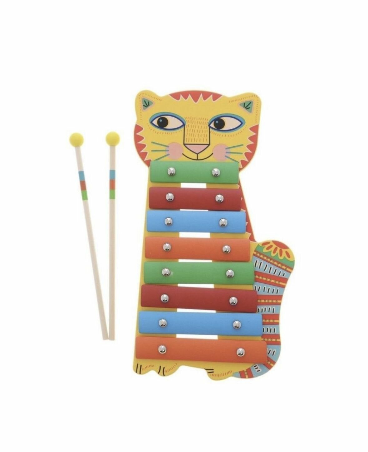 Металлофон Кот от французского производителя Djeco – великолепный детский музыкальный инструмент, с помощью которого ребенок будет развивать свои творческие и музыкальные способности. Металлофон выполнен в виде милого яркого котенка с выразительными глазками, румяными щечками, забавными усиками и красочным хвостиком. На металлофоне есть 8 разноцветных клавиш, в комплект также входят 2 палочки, с помощью которых ребенок будет создавать различные звуки и мелодии. Игра на детских музыкальных инструментах прекрасно развивает музыкальный слух, творческие способности малыша, координацию движений и детскую моторику. Набор изготовлен из безопасных высококачественных материалов.