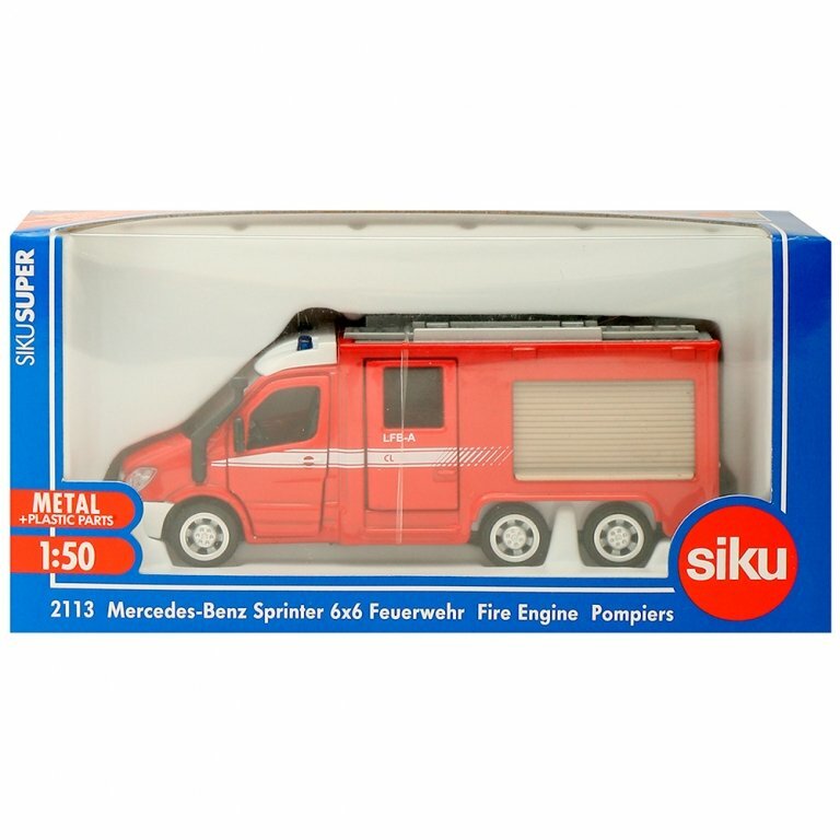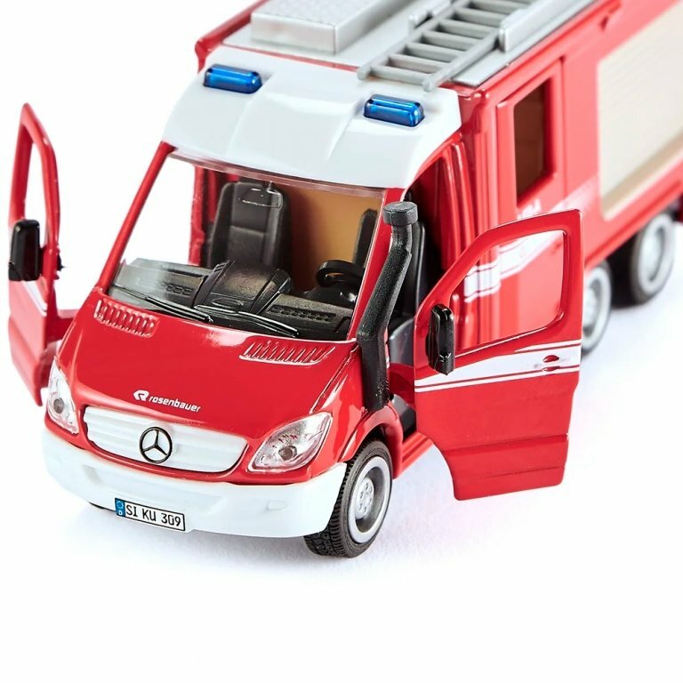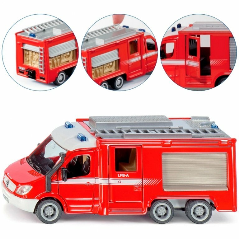 Игрушечная пожарная машина Mercedes-Benz Sprinter, представленная популярным производителем Siku, познакомит ребенка с видом специального транспортного средства. Такая машина используется для доставки отряда пожарников на место бедствия. У игрушечной машины просматриваются все детали (салон, зеркала, фары и другие), у нее открываются наружу двери кабины, двери фургона, поднимаются наверх жесткие жалюзи. На крыше фургона расположена раздвижная лестница. Корпус машины изготовлен из металла. Пожарная машина Mercedes-Benz Sprinter особенно понравится детям, коллекционирующим спецтранспорт.
