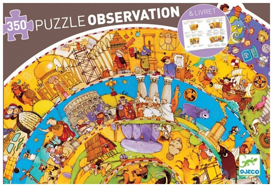 Пазл на наблюдательность «История» - чудесная красочная головоломка, состоящая 350 деталей, способствующая знакомству малыша с мировой историей в форме увлекательного процесса складывания и развития ряда полезных качеств и навыков: внимания, наблюдательности, терпения, мелкой моторики рук, сообразительности. Пазл, оформленный в виде спирали, по мере складывания, будет открывать деткам все новые захватывающие исторические факты. Картинку можно складывать постепенно, небольшими порциями осваивая новую информацию. Детали мозаики изготовлены из трехслойного картона превосходного качества. За счет высокой плотности они не деформируются, а благодаря своим размерам становятся удобными для маленьких детских ручек. Яркий пазл на наблюдательность познакомит Вашего ребенка с интересными моментами истории от древних людей, египтян и древних греков до периода великих открытий и завоеваний, до наших дней. После того как пазл собран, можно усложнить игру, и постараться найти все мелкие детали, изображенные на специальных карточках.