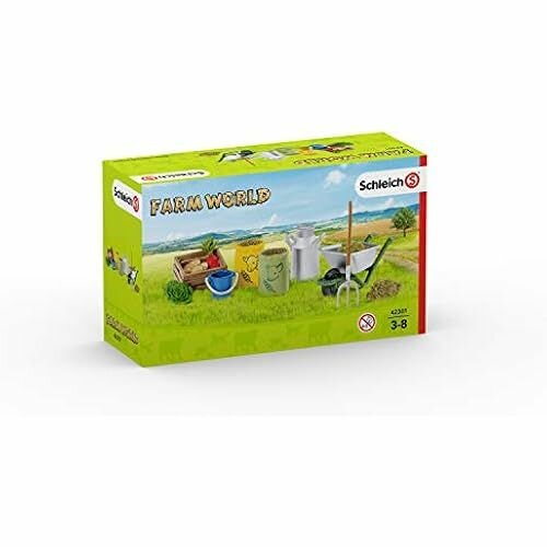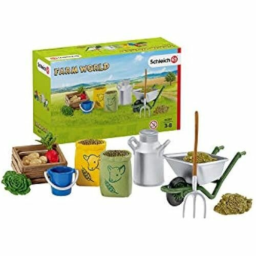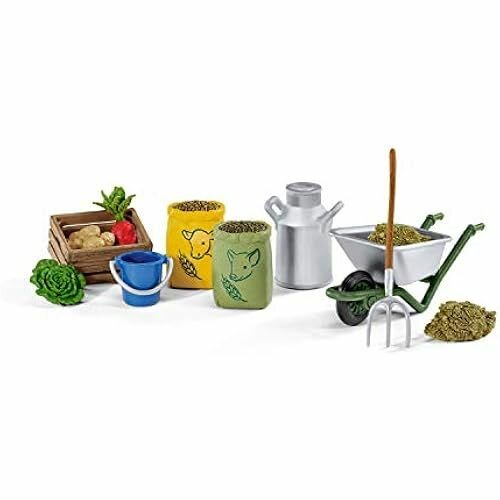 Набор игровой для кормленияе и ухода за фермерскими животными, большой В наборе: ящик для фруктов и овощей свекла картофель салат 2 мешка с зерном бидон тачка грабли сено Размер упаковки: 19 х 8 х 11 см Фигурка изготовлена из высококачественного каучукового пластика.