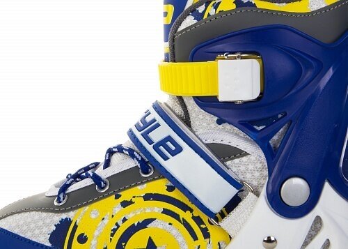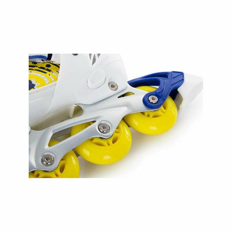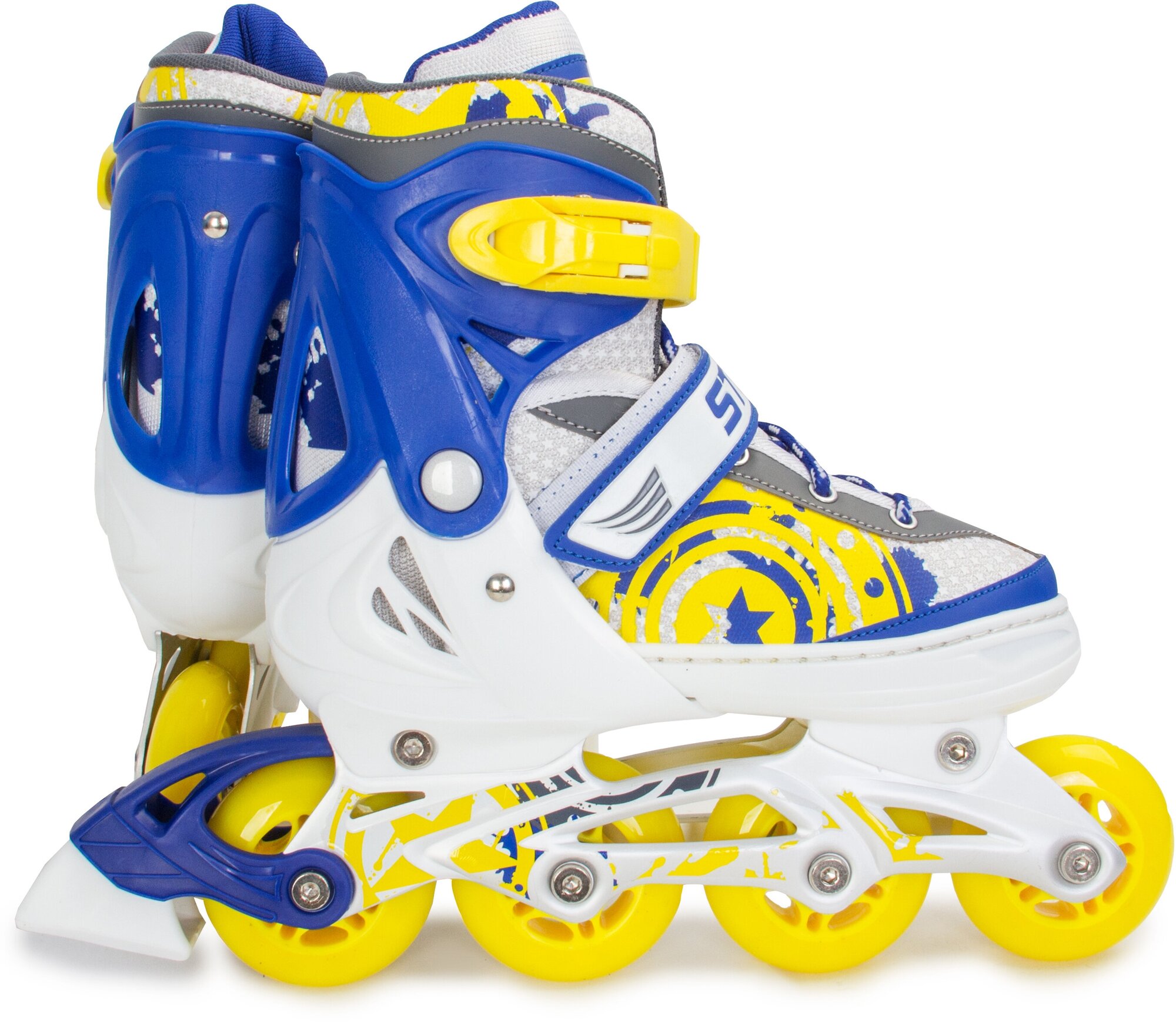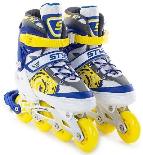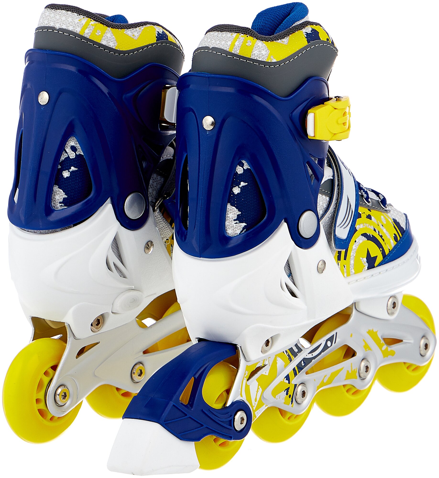 Раздвижные ролики Start Up – отличный выбор для тех, кто только начинает кататься. Мягкий внутренний ботинок удобно сидит на ноге, не вызывая чувство дискомфорта. Ролики оснащены колесами из поливинилхлорида, жесткость 70A. Застежка клипса с фиксатором простая и надежная, с ней легко справится даже ребенок. Модель укомплектована пяточным тормозом, что немаловажно для тех, кто только делает первые шаги на роликовых коньках, и системой вентиляции в носовой части ботинка. Одно из основных преимуществ данной модели – наличие раздвижной системы. Продуманный механизм раздвижения (четыре размера в одном) дает возможность подкорректировать размер под нужный. Что особенно практично, когда Вы приобретаете ролики для ребенка, размер меняется по мере роста ноги.