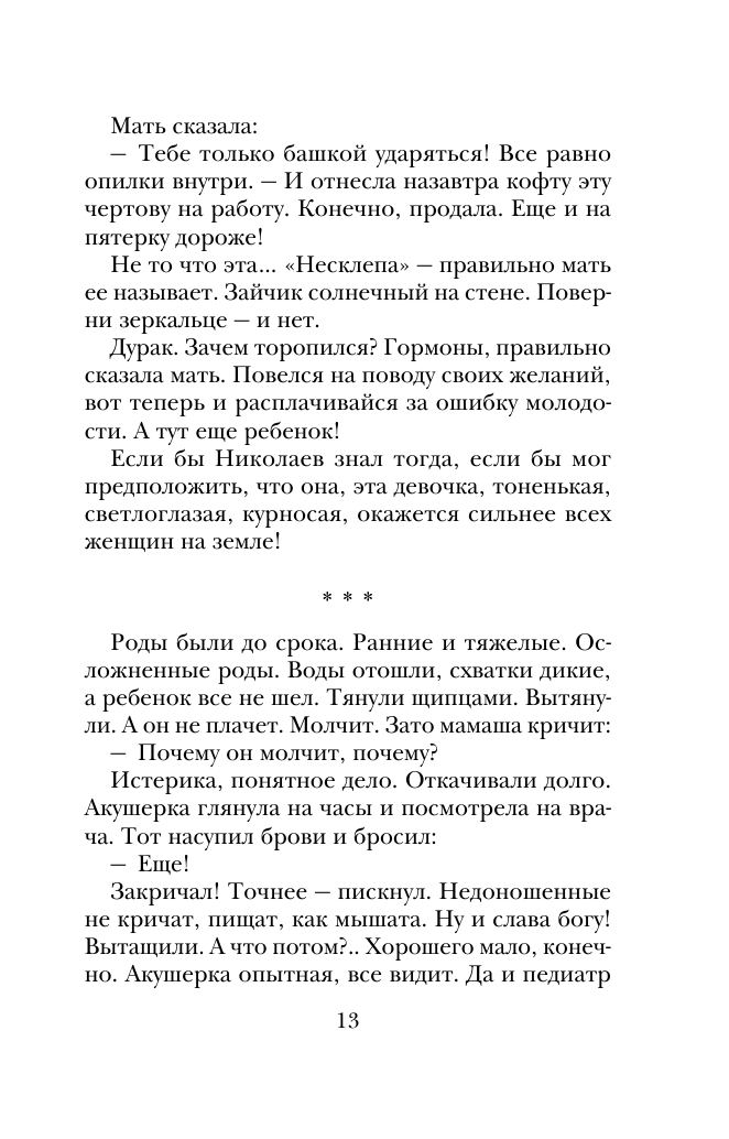 Когда Николаев бросил жену с новорожденным больным ребенком, ему казалось, что он просто перевернул страницу жизни и начал новую. Как в школьной тетради: на этом листе много помарок, начнем с чистого, там-то все будет аккуратно, правильно - как надо. Ему понадобилось много времени, чтобы понять: из жизни не выдернешь страницы, как из школьной тетради. Подлость стоит очень дорого, и работа над ошибками просто исключена.