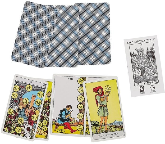 Таро Артура Уэйта, изданное издательством Райдер в 1909 году, выпущено по лицензии на русском языке. Надписи на картах на русском языке.