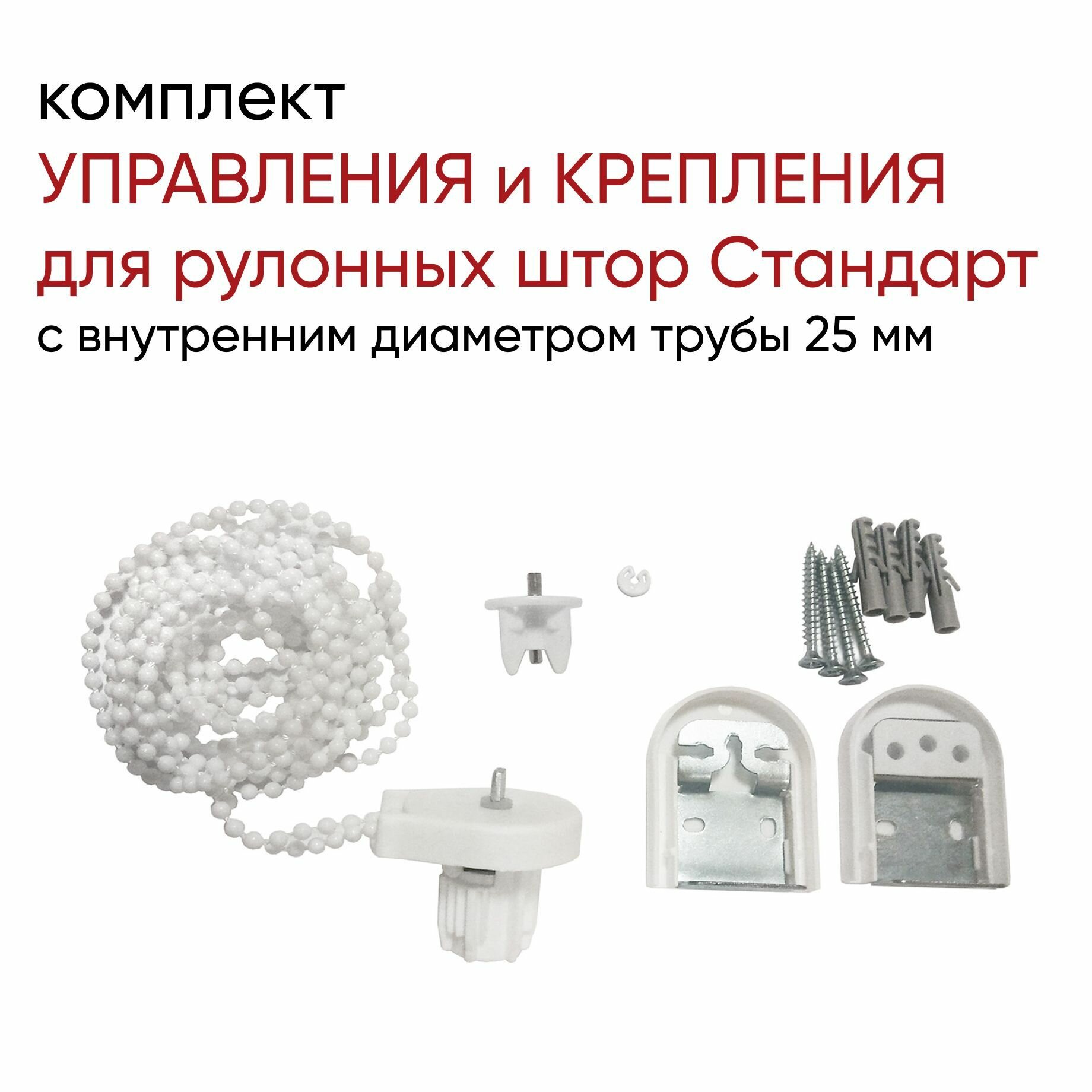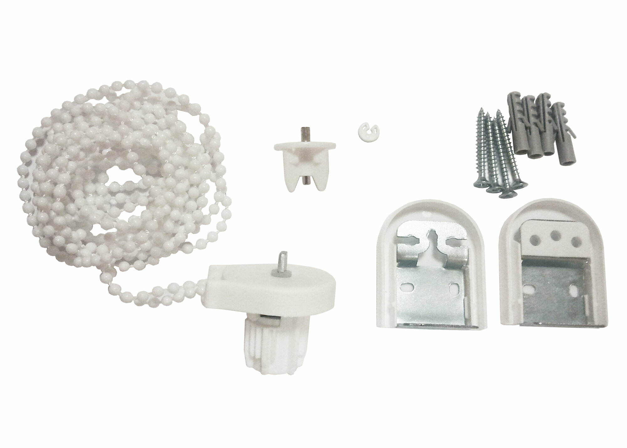 Данный механизм применяется для рулонных штор торговой марки Уют серии Стандарт. Он обеспечивает равномерное и аккуратное скручивание шторы без складок. В комплект входит цепь управления, кронштейн для крепления штор и механизм движения штор. Все предметы набора выполнены из качественного пластика, а соединительные детали механизма из прочного металла.