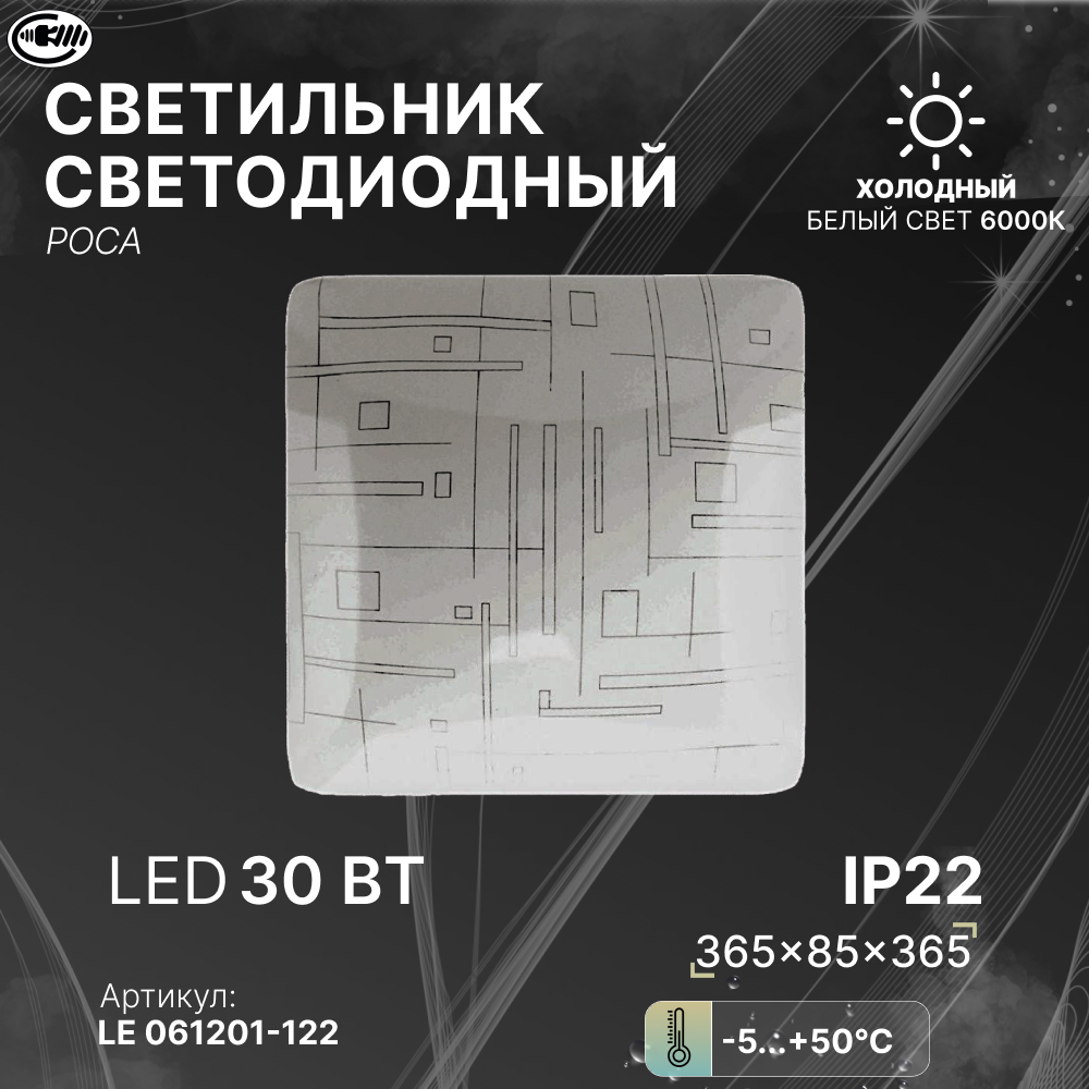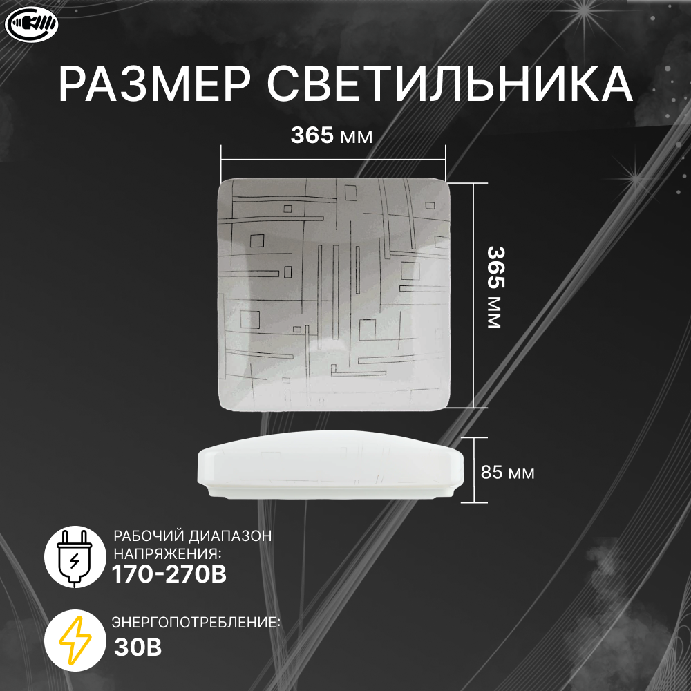 Модель: Светильник настенно-потолочный LED IP55 18W белый 32х32х7,5 см