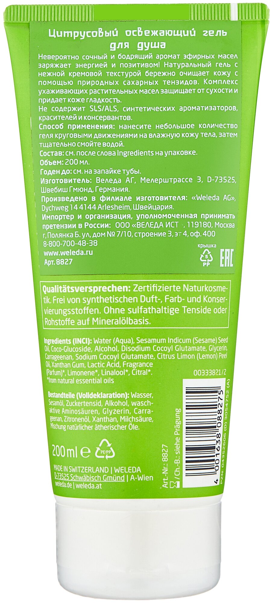 Гель для душа Weleda Освежающий цитрусовый 200 мл (214796)