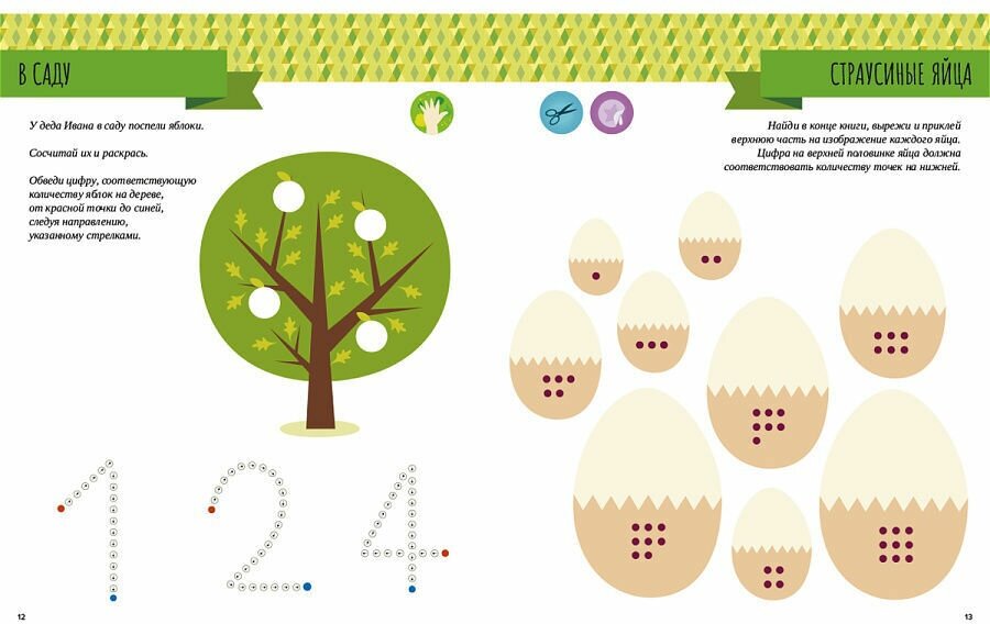 Малыш будет учиться вырезать детали и там, где требуется, наклеивать их на страницу, самостоятельно решая предложенные задачи.