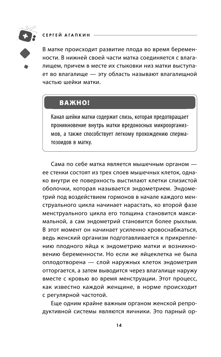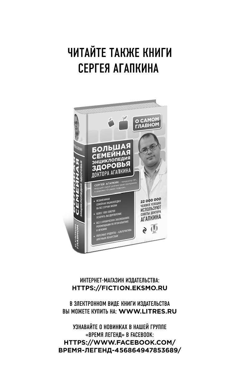 Данная книга станет отличным советчиком для женщины в любом возрасте. Это полная энциклопедия женского здоровья! В ней раскрыта подробная информация о функционировании женского организма, о влиянии гормонов на здоровье и репродуктивную функцию. Что может помешать забеременеть и как легко пережить климакс? Какие заболевания чаще всего угрожают женщинам и как защитить от них свой организм? Как сохранить красоту, обрести стройную фигуру и замедлить старение? В новой книге доктора Агапкина есть ответы на эти и многие другие вопросы, а также даны советы по профилактике, диагностике и лечению наиболее распространенных женских заболеваний. Эффективность рекомендаций подтверждена лучшими врачами страны и миллионами зрителей программы "О самом главном" на телеканале "Россия 1" во главе с доктором Агапкиным.