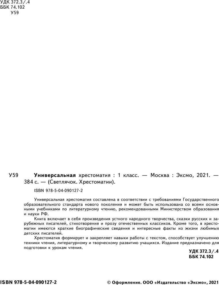 Универсальная хрестоматия составлена в соответствии с требованиями Государственного образовательного стандарта нового поколения и может быть использована со всеми основными учебниками по литературному чтению, рекомендованным Министерством образования и науки РФ.