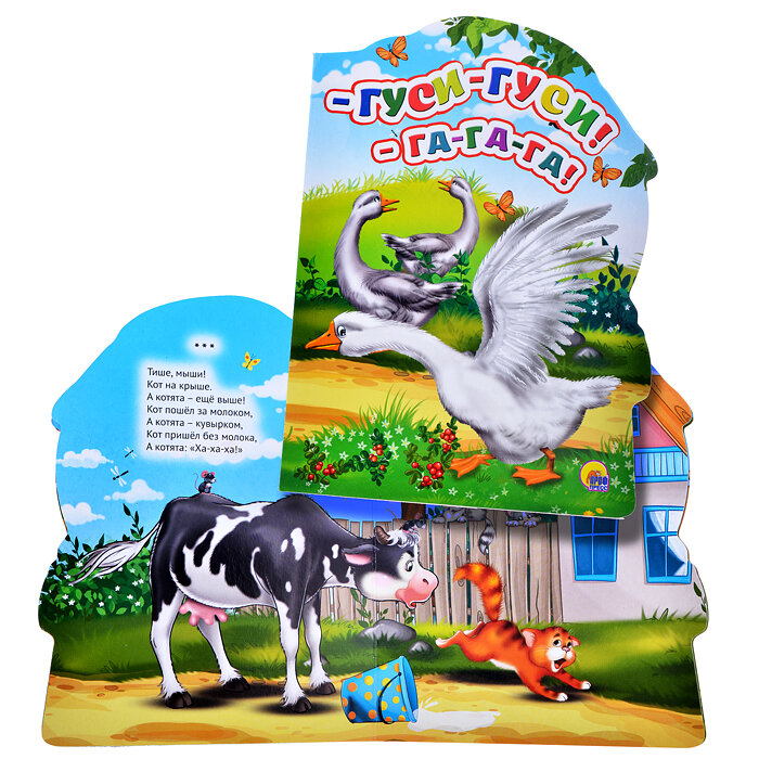 Для младшей дочки решили собрать всю серию "Вырубки на картоне". Книжка "Гуси-гуси" порадовала добрыми и яркими картинками без излишнего креатива. как в некоторых экземплярах данной серии. Животные легко узнаются малышами. Текст легко читается и картон плотный, "малышково-устойчивый". Нам понравилось !