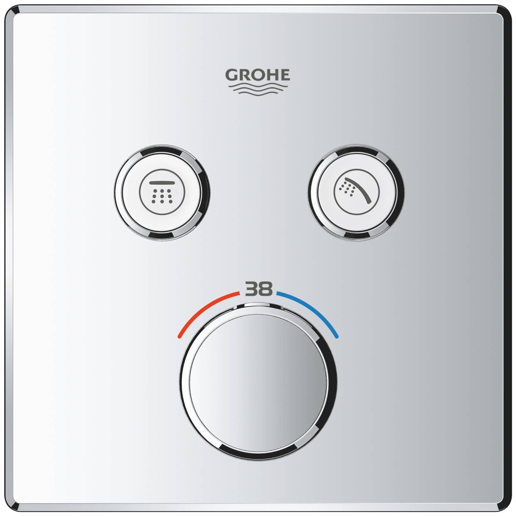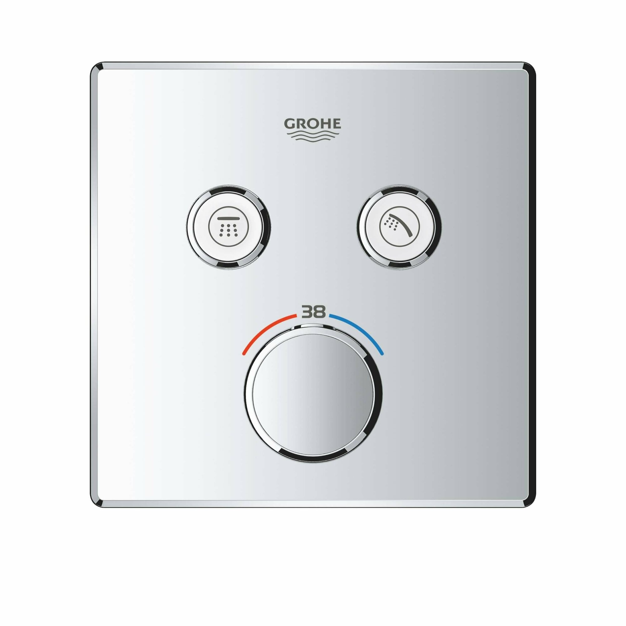 Термостат скрытого монтажа Grohtherm SmartControl позволит вам контролировать принятие душа в полной мере. Он привнесет в вашу ванную комнату утонченный стиль и эргономичное управление. Инновационная технология SmartControl позволит вам регулировать напор воды с помощью нажатия и поворачивания кнопки. Два вентиля позволят вам переключаться или совмещать верхний и ручной души или душ и ванну. Встроенная технология GROHE TurboStat предотвратит неприятные скачки температуры. Маркировка EasyLogic и иконки на кнопках с заменяемыми символами делают использование термостата интуитивно понятным. Кнопка GROHE SafeStop позволит вам установить максимальную температуру в 38°C, что предотвратит ошпаривание, а ограничитель температуры GROHE SafeStop Plus предоставит опцию увеличить максимум температуры до 43°C для большего уровня безопасности. Водосберегающая технология GROHE EcoJoy поможет сократить расход воды без ущерба для комфорта при принятии душа. Благодаря системе GROHE QuickFix термостат легко установить. Тонкий профиль термостата делает его поддержание в чистоте очень простым, а надежное хромовое покрытие GROHE StarLight сохранит свой блеск на долгие годы. Благодаря его утонченному современному дизайну, термостат сможет усовершенствовать дизайн вашей ванной комнаты. Пожалуйста, обратите внимание, что этот продукт должен быть установлен в комбинации с универсальной встраиваемой частью GROHE Rapido SmartBox (35600000).