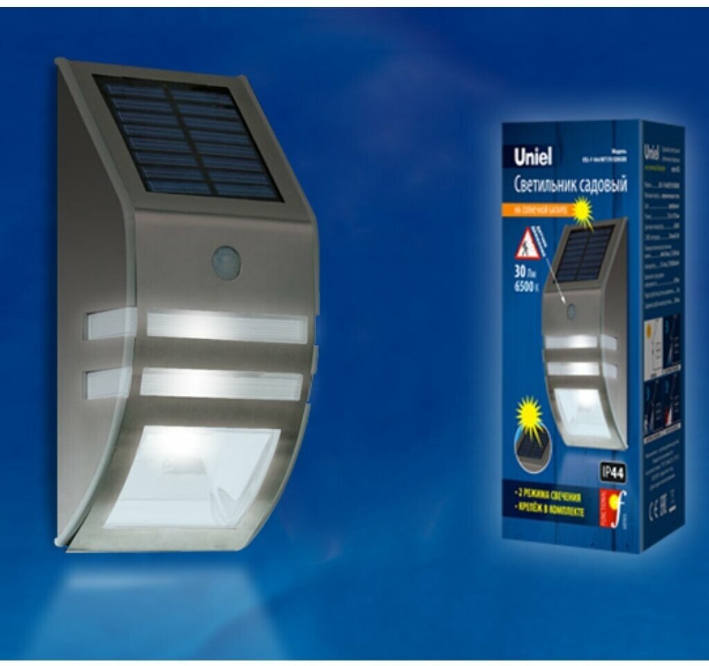 Светильник на солнечных батареях Uniel Functional UL-00003135 - это современное и надежное уличное освещение, которое станет незаменимым помощником в создании комфортной и безопасной атмосферы на вашем участке. Светильник оснащен датчиком движения, который автоматически включает и выключает свет в зависимости от наличия движения в зоне его действия. Это позволяет экономить энергию и обеспечивает комфортное освещение только в те моменты, когда это необходимо. Светильник выполнен из качественных материалов - металл и пластик, что гарантирует его долговечность и надежность. Плафон светильника имеет прямоугольную форму и бесцветный цвет, что придает ему современный и стильный вид. Светильник работает на солнечных батареях, что делает его независимым от наличия электросети. Благодаря этому, светильник может быть установлен в любом месте, где есть доступ к солнечному свету. Светильник имеет степень пылевлагозащиты IP44, что обеспечивает его защиту от брызг воды и пыли. Рабочий диапазон температур составляет от -20° до +35°С, что позволяет использовать светильник в различных климатических условиях. Светильник обладает мощностью 0.4 Вт и световым потоком 30 лм, что обеспечивает яркое и равномерное освещение. Цветовая температура составляет 6500 К, что соответствует белому свету. Светильник Uniel Functional UL-00003135 - это сочетание функциональности, качества и стильного дизайна, которое станет отличным выбором для освещения вашего участка.