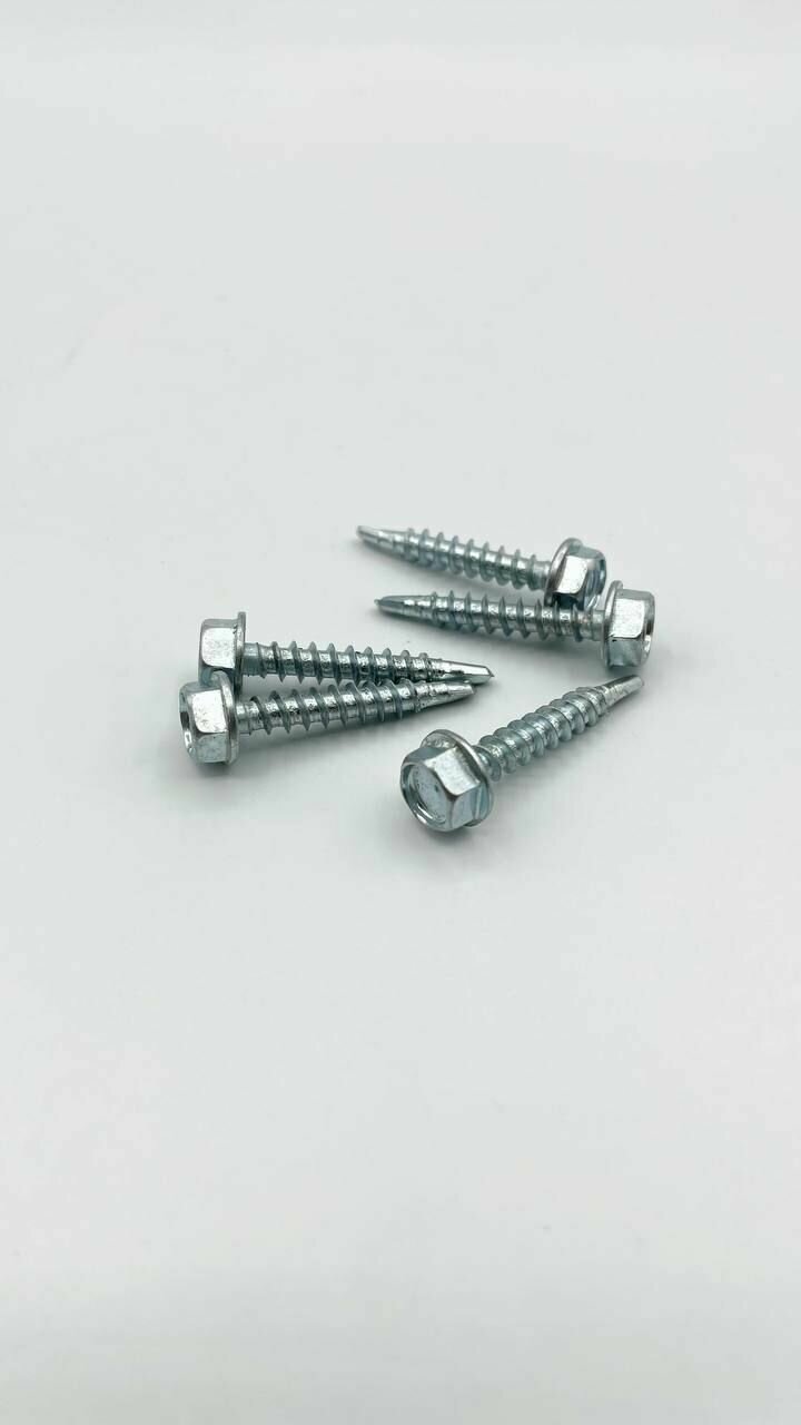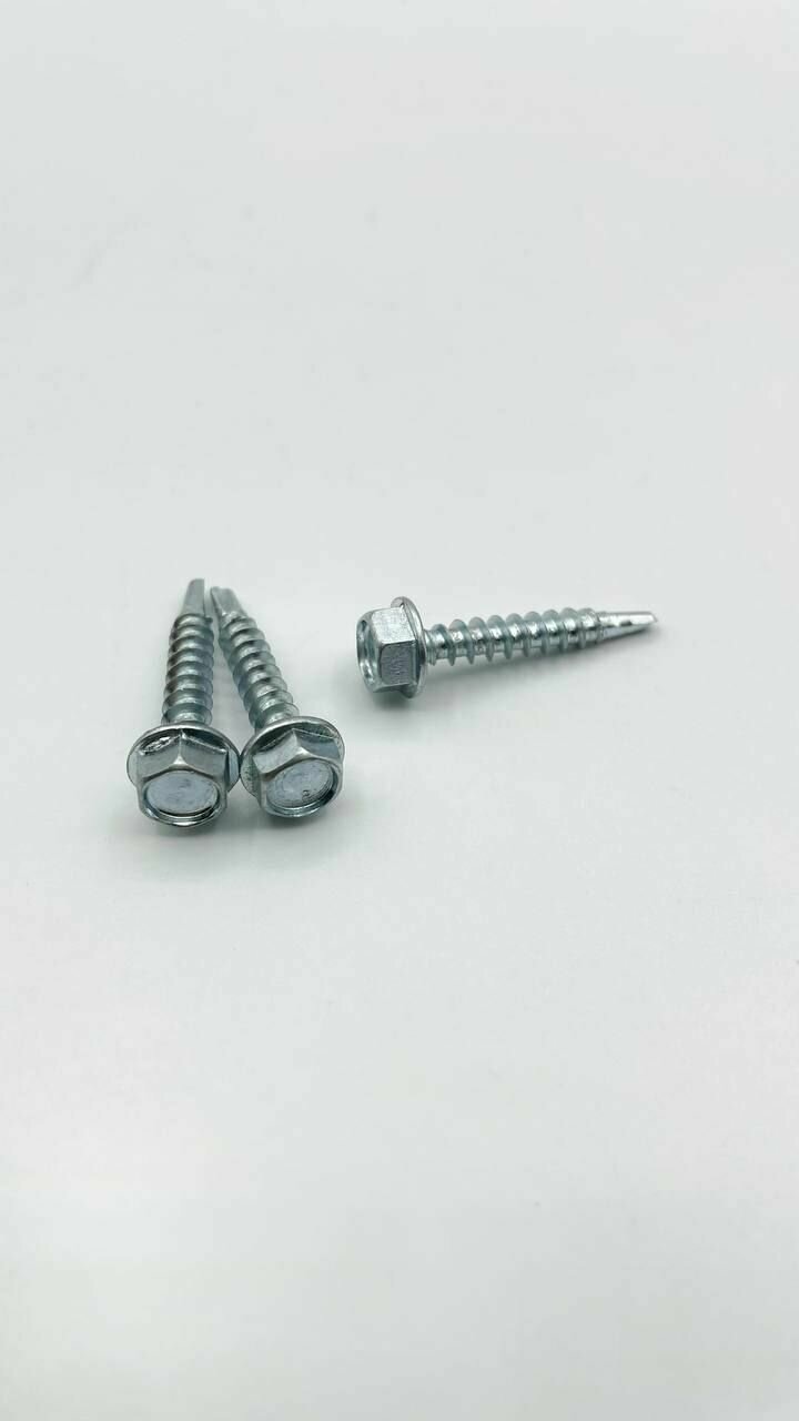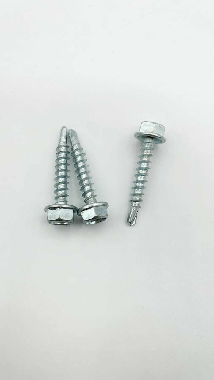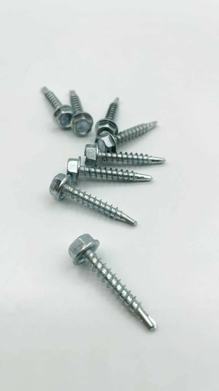 Саморезы кровельные с буром предназначены для монтажа кровельных и облицовочных материалов (металлочерепица, профнастил и пр.) к деревянным основаниями и металлическим конструкциям без предварительного засверливания прикрепляемого материала толщиной до 2,5мм.Очень важным аспектом является использование уплотняющей прокладки EPDM (этилен-пропиленовый каучук)- атмосферостойкий каучук, который устойчив к воздействию озона, солнечного света, химических веществ и очень эластичный при низких температурах, что обеспечивает высокую степень герметизации соединения при перепадах температур от -40°С до +120°С.Саморезы имеют шестигранную головку под ключ 8 мм. Производятся из оцинкованной стали.