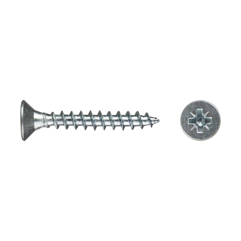 Саморез используется для крепления дерева, ДСП, ДВП и других материалов. Имеет потайную головку, крестообразный шлиц Pozi, острый наконечник, крупную резьбу.