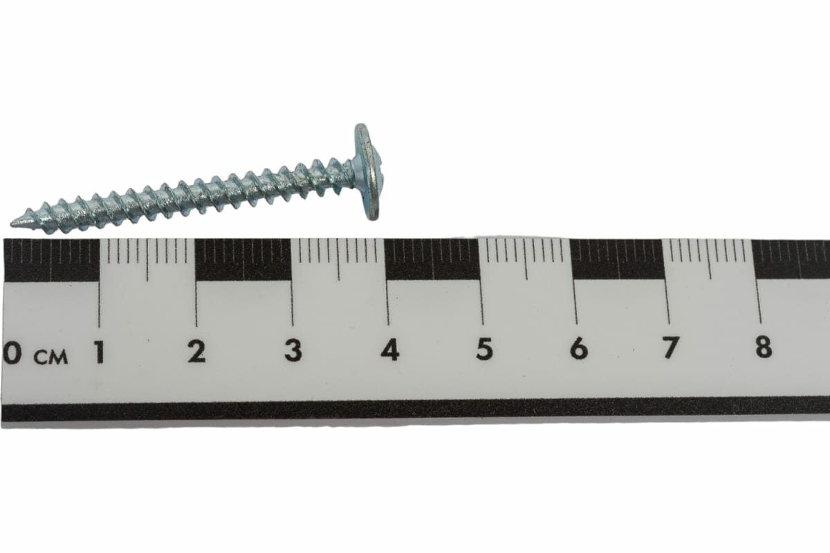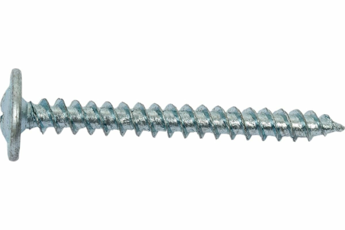 Саморезы по металлу предназначены для крепления различных металлических элементов толщиной до 0,9 мм между собой и к несущей поверхности без предварительного сверления. Имеют полусферическую головку с прессшайбой и крестообразным шлицем PH2(Philips N2), резьбу с мелким шагом и острый наконечник. Пресс-шайба плотно прижимает листовой материал к основанию, придавая всему соединению прочность и надежность. Производятся из оцинкованной стали. Саморезы имеют полную резьбу. Могут использоваться совместно с распорными дюбелями.