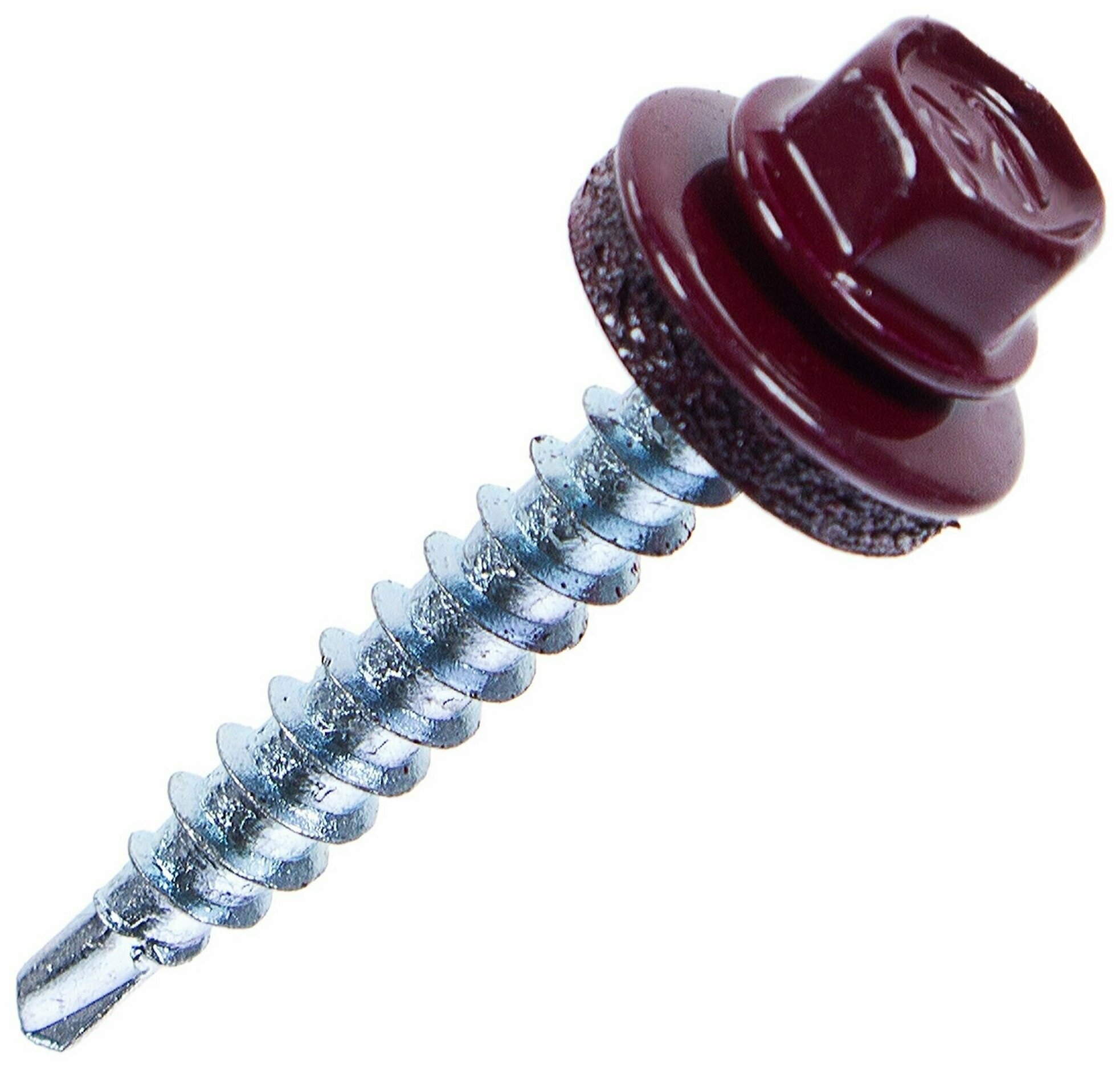 Предназначен для крепления кровельных материалов к металлическим и деревянным каркасам. Имеет окрашенную шестигранную головку с шайбой и резиновой прокладкой EPDM, наконечник - сверло.