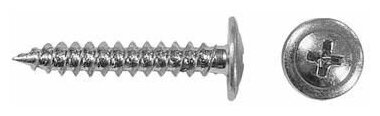 Саморезы по металлу предназначены для крепления различных металлических элементов толщиной до 0,9 мм между собой и к несущей поверхности без предварительного сверления. Имеют полусферическую головку с прессшайбой и крестообразным шлицем PH2(Philips N2), резьбу с мелким шагом и острый наконечник. Пресс-шайба плотно прижимает листовой материал к основанию, придавая всему соединению прочность и надежность. Производятся из оцинкованной стали. Саморезы имеют полную резьбу. Могут использоваться совместно с распорными дюбелями.