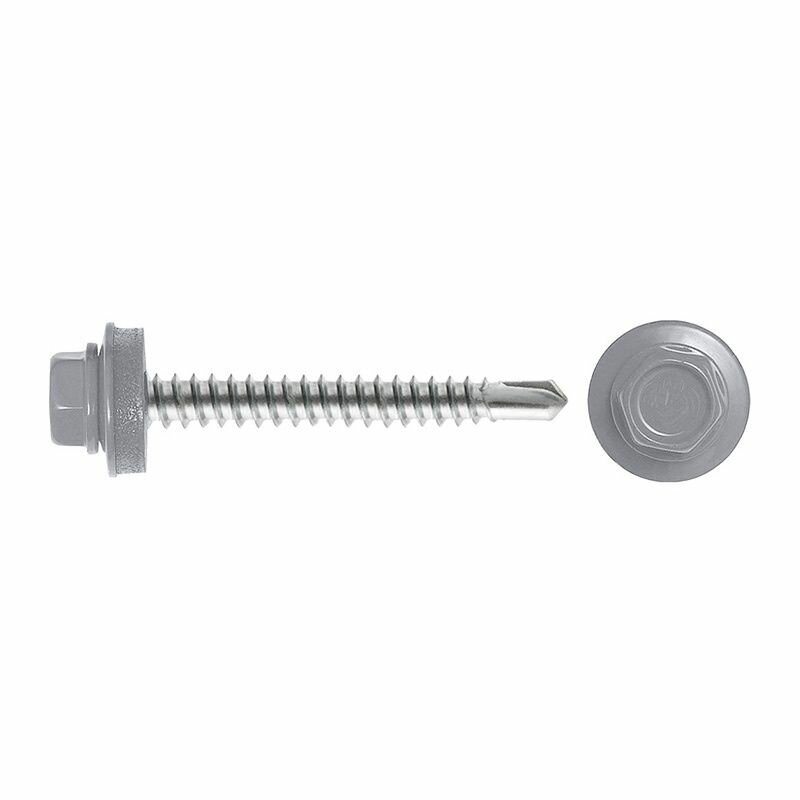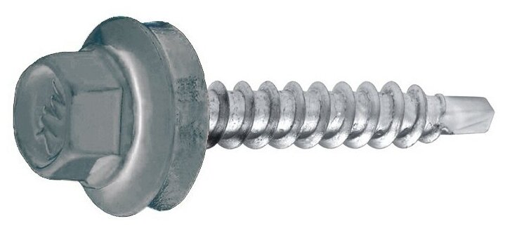Саморез используется для крепления кровельных материалов к металлическим и деревянным каркасам. Имеет окрашенную шестигранную головку с шайбой и резиновой прокладкой EPDM, наконечник - сверло.