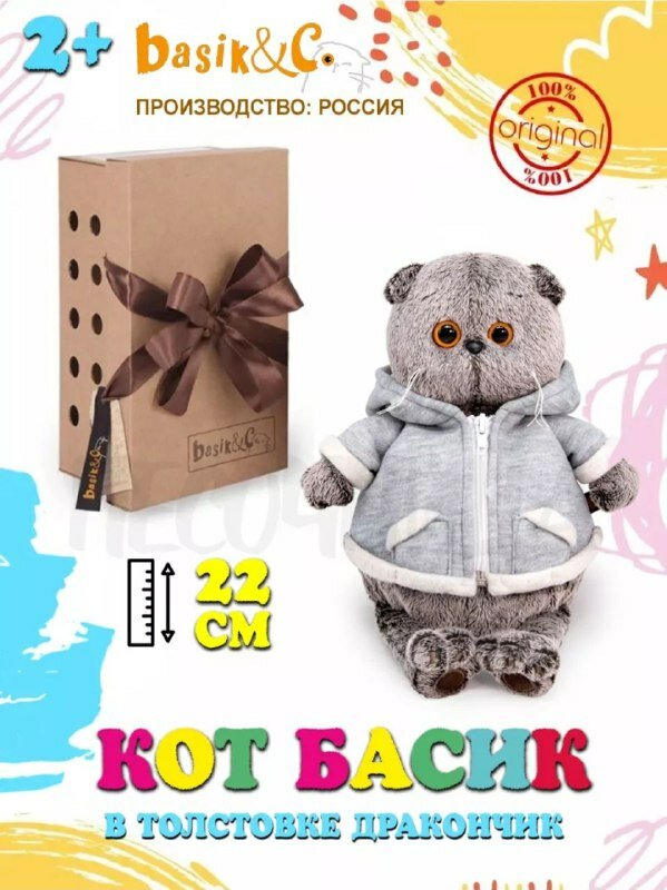 Мягкая игрушка Кот Басик в толстовке дракончик от российской компании Буди Баса выполнена из невероятно мягкого материала, очень приятного на ощупь.