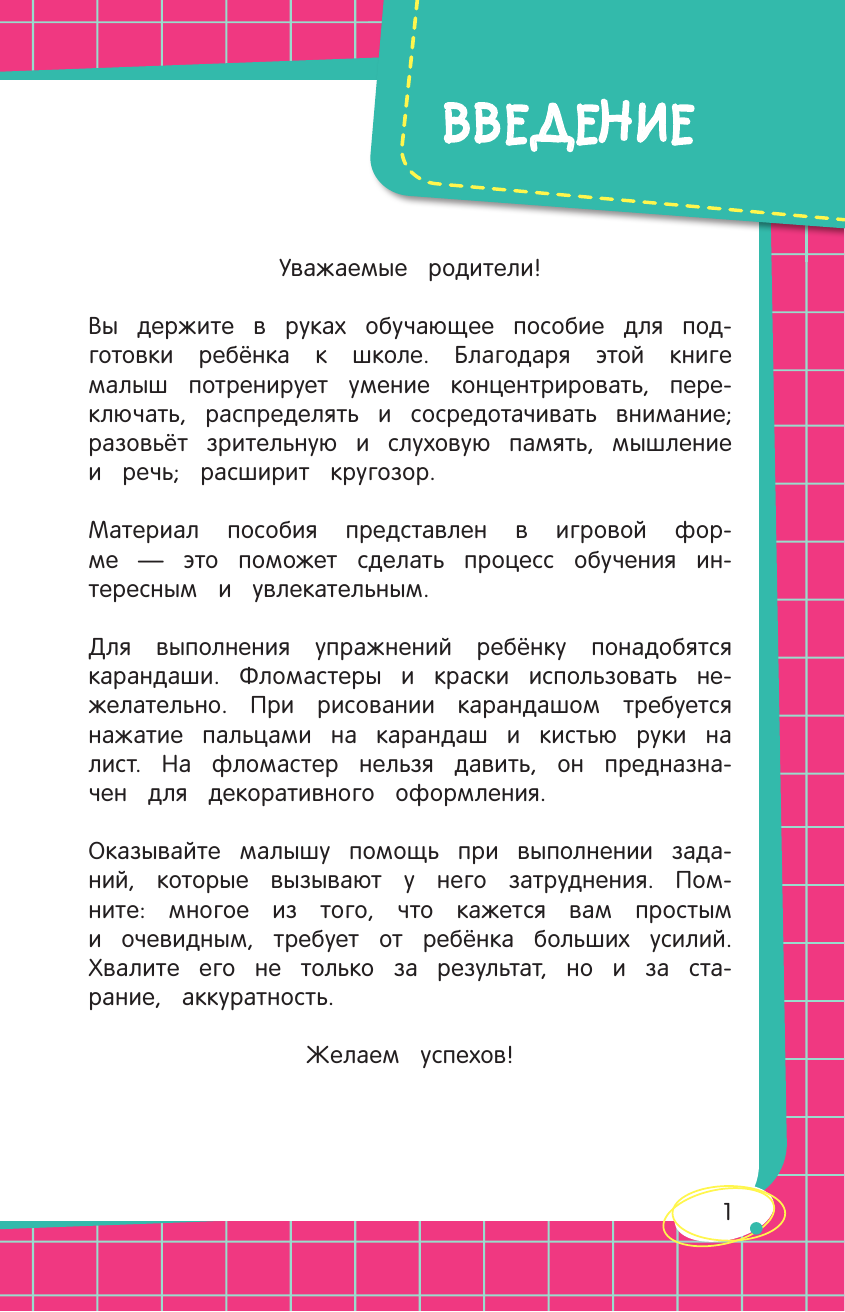 Благодаря этой книге ребёнок потренирует умение концертировать, переключать, распределять и сосредотачивать внимание; разовьёт зрительную и слуховую память, мышление и речь; расширит кругозор.