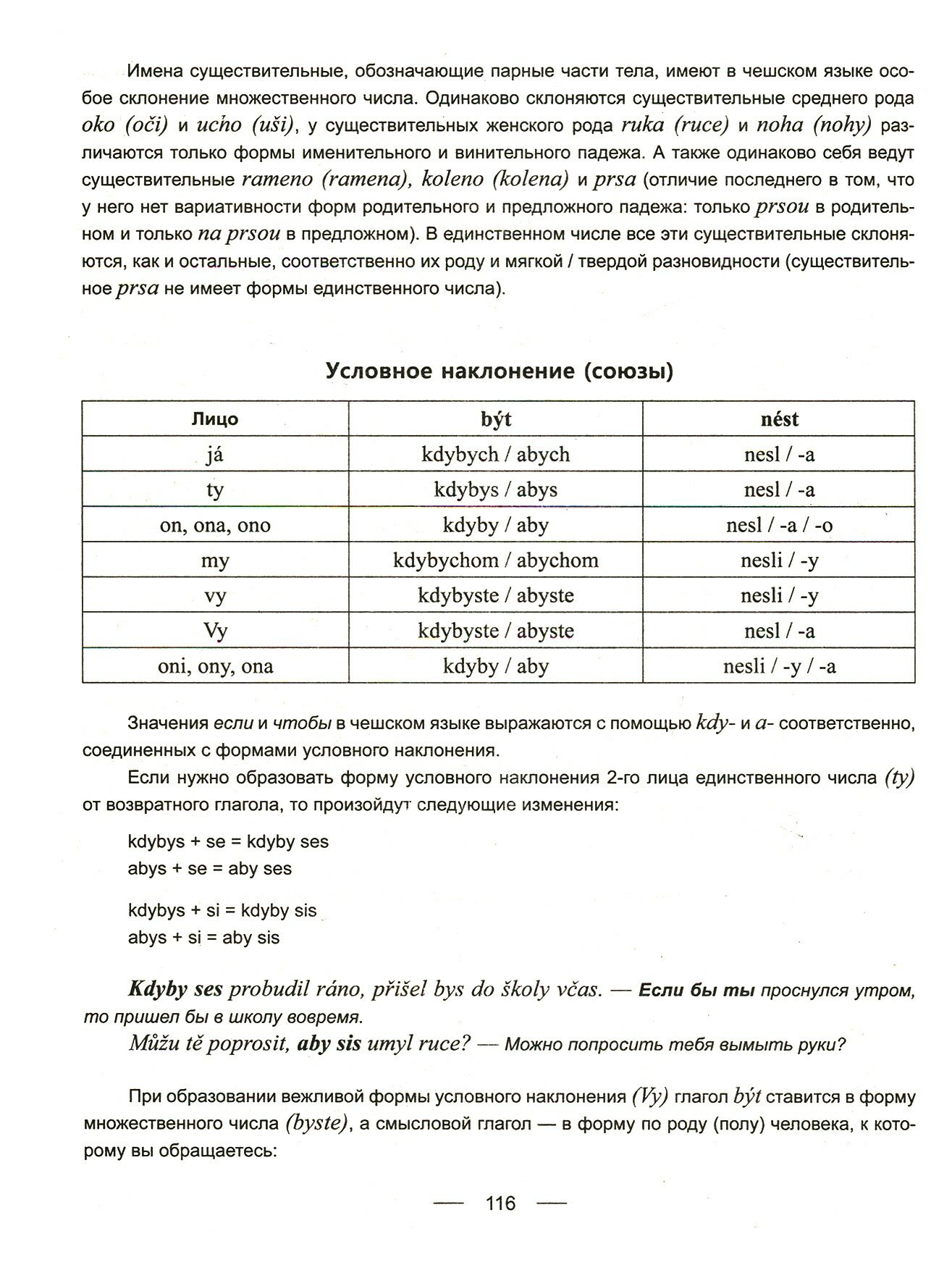 Хороший учебник, который может быть использован для самостоятельного изучения чешского языка. Организован по принципу "от простого к сложному". В каждом разделе есть диалог, словарь, объяснение грамматических правил и упражнения, правильность выполнения которых можно проверить по "ключам". Информация изложена довольно подробно и понятно. В последнем разделе даны дополнительные тексты для чтения.