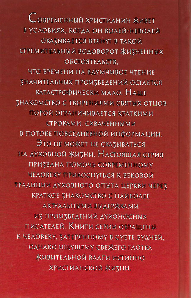 Книга небольшая, удобно брать с собой. Страницы плотный, качественные. Выдержки разделены на блоки по темам: основы духовной жизни, христианская нравственность, некоторые вопросы православного вероучения, взаимоотношения с Богом, взаимоотношения с ближними, внутренняя жизнь христианина. Читать очень интересно, проникаешься и погружаешься на много столетий назад