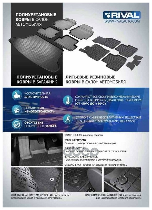 Тюнинг-комплекты Rival 62310001 Современная версия ковров для автомобилей, изготовлены из высококачественного и экологичного сырья с использованием технологии высокоточного литься под давлением, полностью повторяют геометрию салона вашего автомобиля.