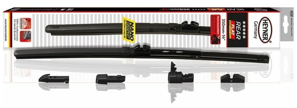 Так называемые дворники для автомобиля, или щетка стеклоочистителя «Хейнер» - известного немецкого производителя - REAR FLAT HYBRID, созданная с традиционной немецкой педантичностью в соответствии со стандартом ISO TS16949, предназначена для установки на автомобили со стандартным типом крепления стеклоочистителя заднего стекла. Прочная и долговечная стальная прижимная пружина обеспечивает качественное прилегание резинки стеклоочистителя к поверхности стекла на всем ее протяжении – превосходное удаление со стекла пыли, грязи, мусора, осадков, все для идеальной видимости!Резинка для этой бескаркасной щетки стеклоочистителя HEYNER, Германия, изготовлена из качественного натурального материала – 100% каучука; на поверхность резинки нанесено препятствующее истиранию и естественному износу элемента напыление, наличие которого обеспечивает непревзойденную чистоту стекол, без разводов, царапин и несовершенств! Щетки стеклоочистителя «Хейнер» не подвержены обледенению. В нашем ассортименте представлены автомобильные дворники – зимние щетки стеклоочистителя каркасные, бескаркасные и гибридные, сочетающие в себе все преимущества классических каркасных и модных бескаркасных моделей. Щетки подходят для различных автомобилей отечественного и зарубежного производства, в том числе всех моделей ВАЗ и «Лада», «Форд Фокус», «Киа Рио» и других популярных моделей авто.