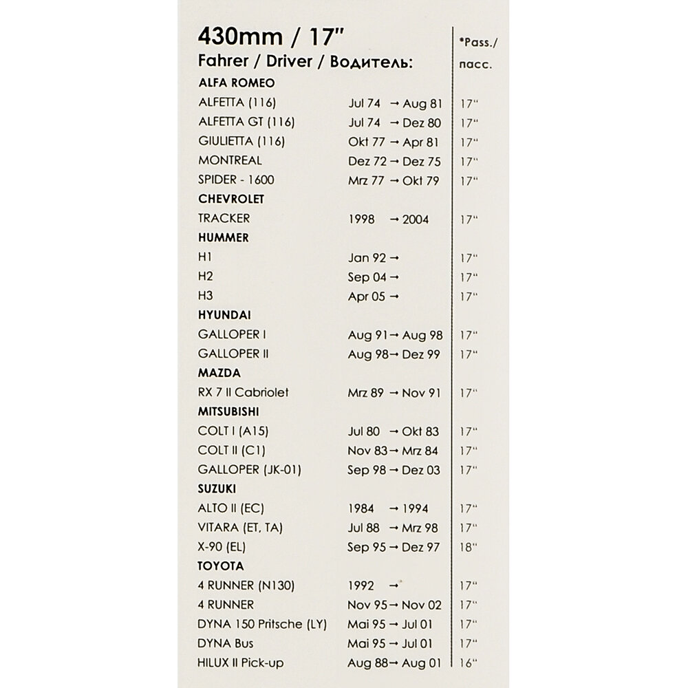 | Размер щетки | 430мм/17" |