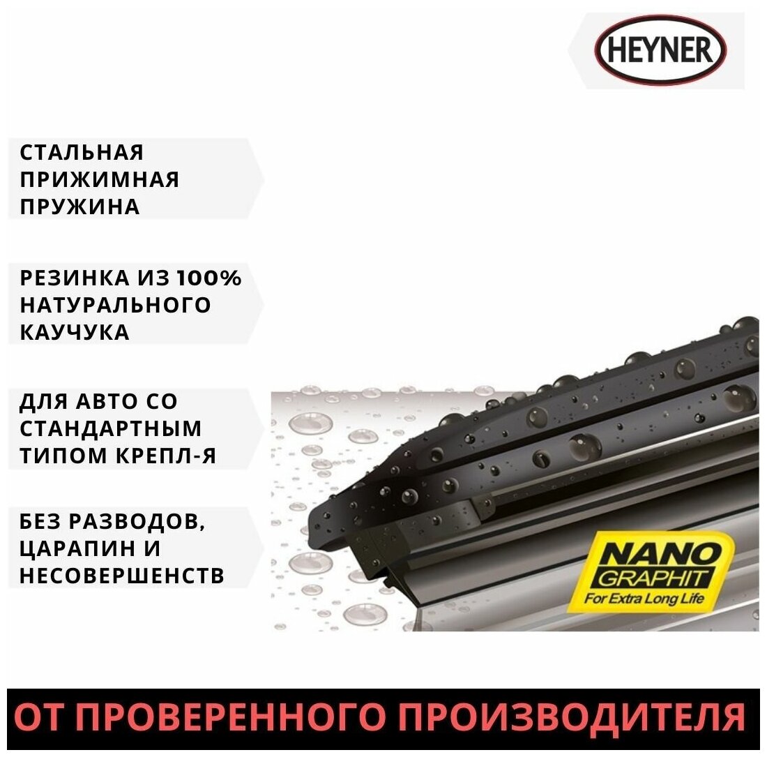 Так называемые дворники для автомобиля, или щетка стеклоочистителя «Хейнер» - известного немецкого производителя - REAR FLAT HYBRID, созданная с традиционной немецкой педантичностью в соответствии со стандартом ISO TS16949, предназначена для установки на автомобили со стандартным типом крепления стеклоочистителя заднего стекла. Прочная и долговечная стальная прижимная пружина обеспечивает качественное прилегание резинки стеклоочистителя к поверхности стекла на всем ее протяжении – превосходное удаление со стекла пыли, грязи, мусора, осадков, все для идеальной видимости! Резинка для этой бескаркасной щетки стеклоочистителя HEYNER, Германия, изготовлена из качественного натурального материала – 100% каучука; на поверхность резинки нанесено препятствующее истиранию и естественному износу элемента напыление, наличие которого обеспечивает непревзойденную чистоту стекол, без разводов, царапин и несовершенств! Щетки стеклоочистителя «Хейнер» не подвержены обледенению. В нашем ассортименте представлены автомобильные дворники – зимние щетки стеклоочистителя каркасные, бескаркасные и гибридные, сочетающие в себе все преимущества классических каркасных и модных бескаркасных моделей. Щетки подходят для различных автомобилей отечественного и зарубежного производства, в том числе всех моделей ВАЗ и «Лада», «Форд Фокус», «Киа Рио» и других популярных моделей авто.