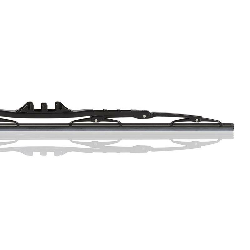 Уникальная разработка немецких конструкторов: гибридный каркас, снабженный запатентованными металлическими шарнирами для идеального контакта.Щетка чистит тихо, равномерно прилегает к стеклу, не оставляет разводов и потеков.Металлическая пружина из высококачественной стали обеспечивает плотный, но бережный контакт, не оставляя царапин и шероховатостей на поверхности стекла.Полностью оцинкованный металлический каркас увеличивает срок службы и бережет конструкцию от коррозий холодом и влагой.Резиновая полоска покрыта мельчайшими частицами графита (NANO – 10-9), что защищает резинку от погодных условий, а стекло от царапин.Увеличенный срок службы подтвержден немецким сообществом TUV Rheinland.Эффективная работа резины щетки не оставляющая полос протестирована Detroit testing Laboratory, Inc. U.S.A
