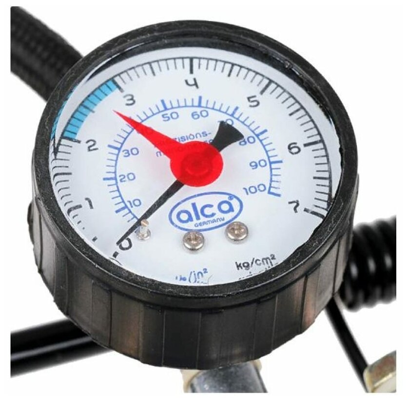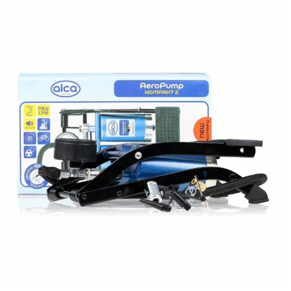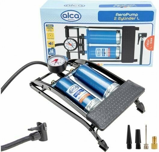 Аксессуары Alca Ножной двухцилиндровый насос HEYNER Премиум с точным манометром 7 бар предназначен для подкачки автомобильных, мотоциклетных и велосипедных шин, мячей и прочих надувных предметов. В комплекте пневматический шланг 60 см и 4 специальных адаптера.
