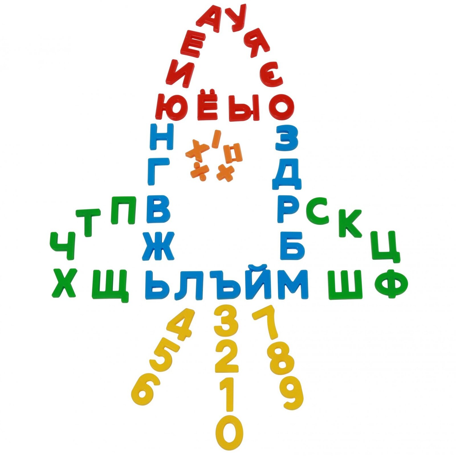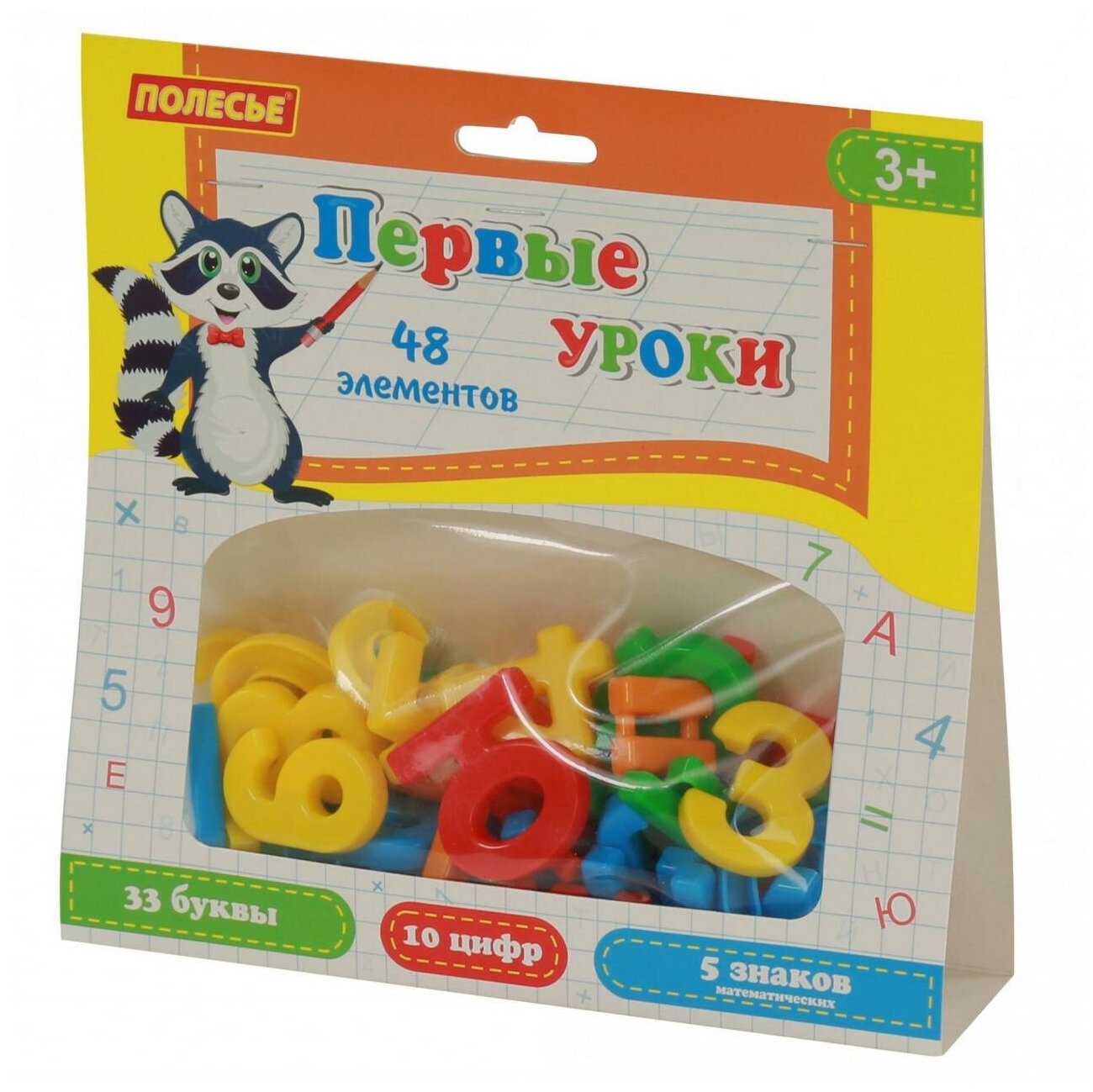 | Состав набора | 33 буквы, 10 цифр, 5 математических знаков |