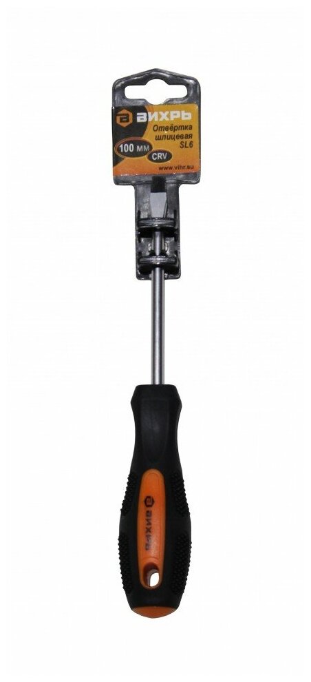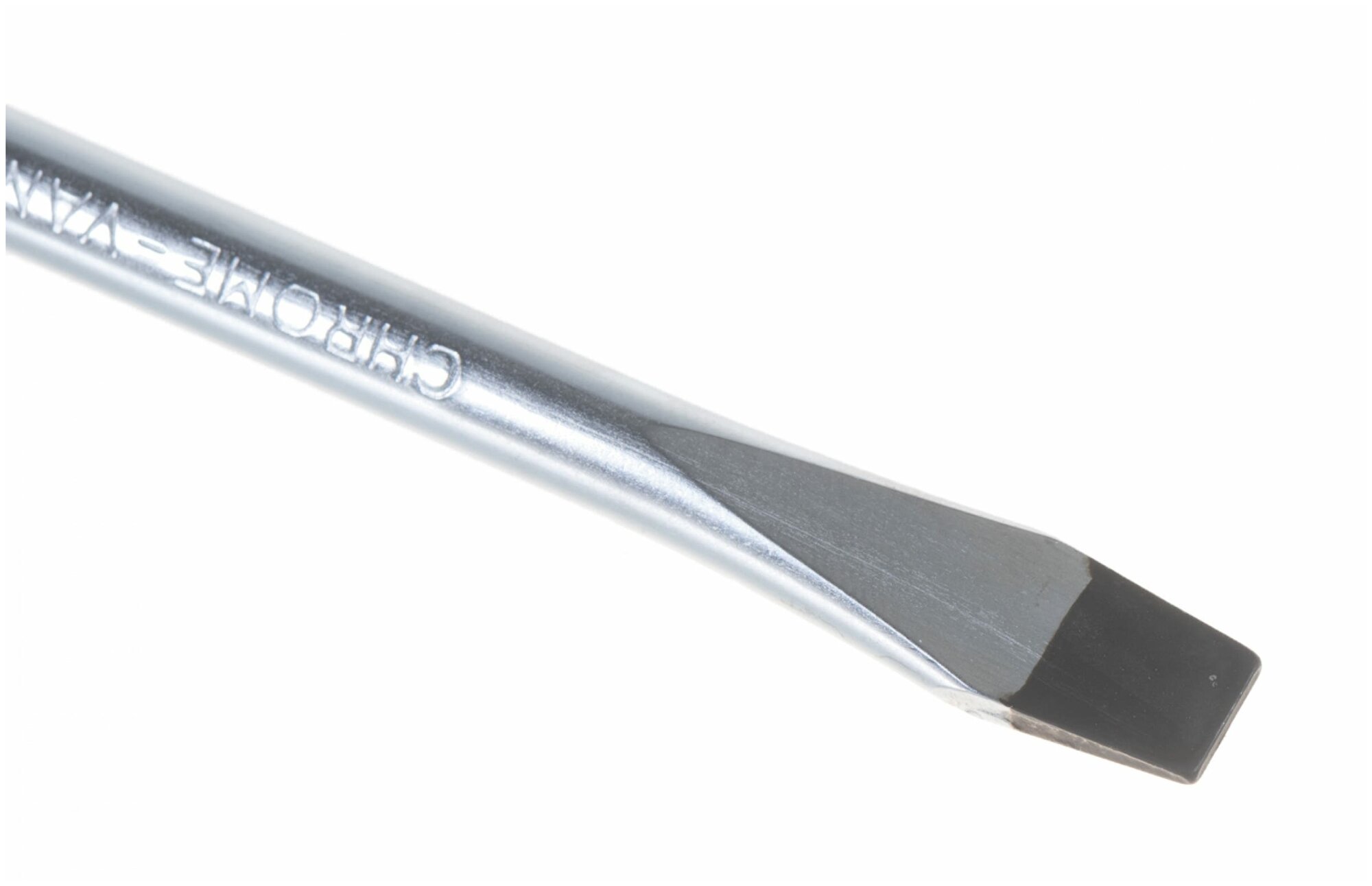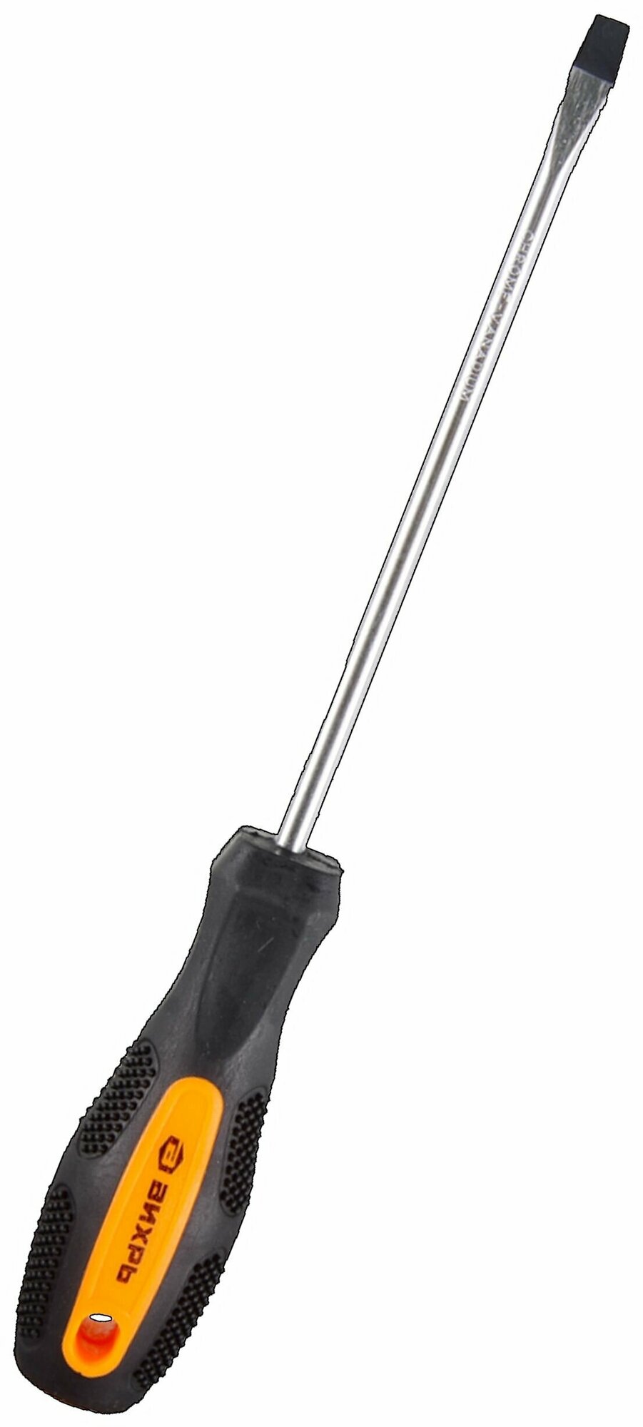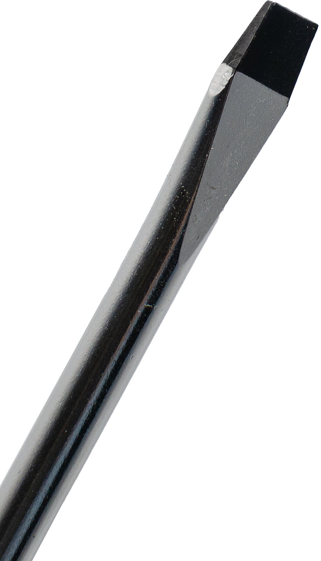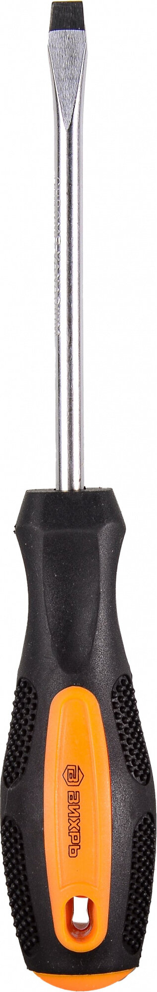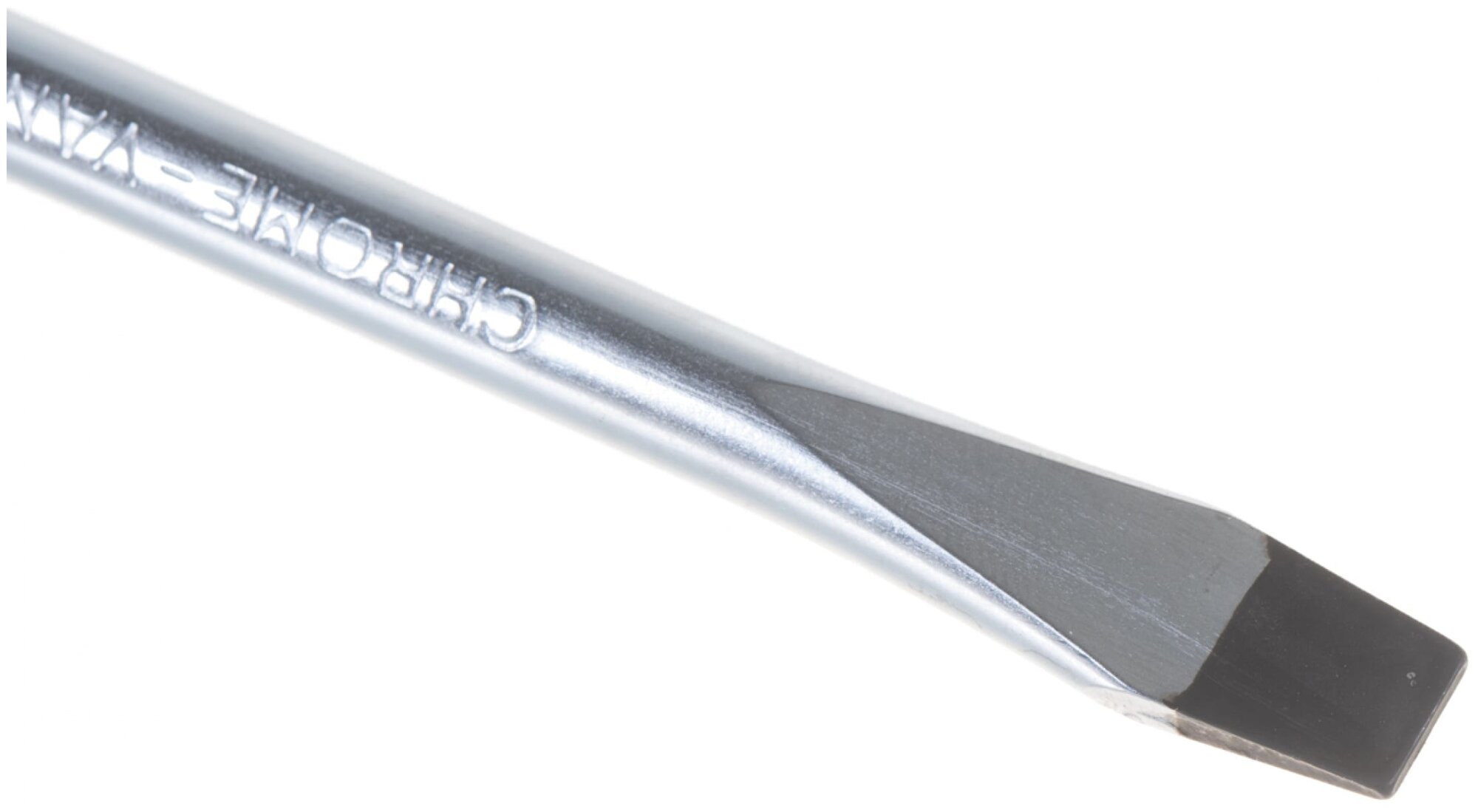 Отвертка обладает широким шлицем, которого достаточно для работы с большими винтами. Преимущество модели заключается в наличии нескользящей двухкомпонентной рукоятки. Хромованадиевый стержень обеспечивает максимально полную передачу усилий к крепежу.